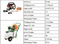 Pulverizator cu presiune cu motor ardere interna. Dispozitiv eficient dedicat muncii în agricultură și horticultură. Scopul său principal este pulverizarea de produse fitosanitare pentru combaterea bolilor și dăunătorilor. Poate fi folosit pentru protejarea plantelor precum copacii, tufele de fructe, bumbacul, orezul, cerealele etc. Poate fi folosit și pentru pulverizarea altor substanțe chimice într-un proces precum decontaminarea și dezinfectarea . Posibilitatea utilizării unui rezervor extern pentru pulverizarea lichidului (care permite plasarea acestuia, de exemplu, pe un rezervor Mauser de 1000L