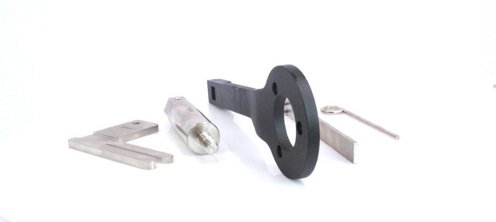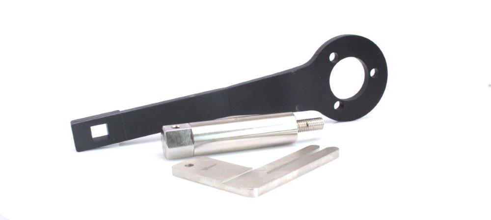 - Setul este necesar la îndepărtarea instalării lanțului de sincronizare și este potrivit pentru setarea și blocarea reductorului. Include unelte pentru alinierea arborelui cotit și întinderea lanțului.