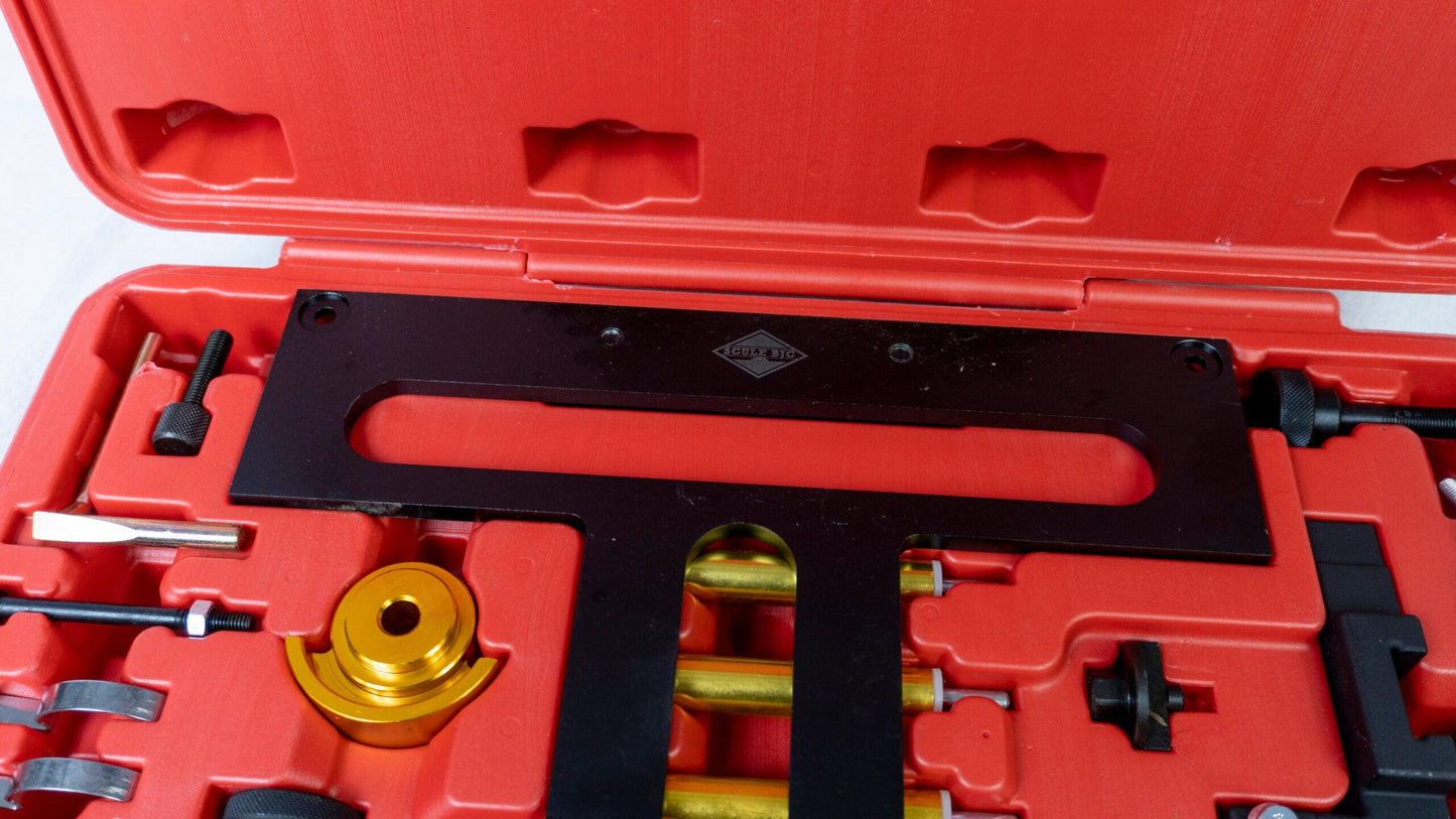 Este potrivit pentru următoarele modele BMW: Seria 1, Seria 3, Seria 5, X3 și Z4 (E81, E87, E46, E90, E91, E60, E61, E85 și E83). Acest set de unelte este esențial pentru lucrările de întreținere și reparații la motorul BMW și asigură sincronizarea corectă a arborelui cu came în timpul operațiunilor de schimbare a curelei de distribuție, reglare a supapelor și altele. Cu acest set, veți putea efectua aceste operațiuni în mod precis și eficient, păstrând motorul BMW în cea mai bună formă posibilă. Este un instrument indispensabil pentru mecanicii și pasionații de mașini care lucrează cu motoarele BMW menționate.