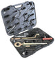 Setul are o gamă largă de instrumente adaptate diferitelor tipuri de lucru pe motor, de ex. - șurub de montare, - știft de blocare a arborelui cu came, - cheie de 45 / 50mm care blochează fulia arborelui cotit, - soclu de 7 mm, cheie care blochează roata dințată, - o cheie care blochează fulia, - ax pentru pompa de injecție de combustibil, - dispozitiv de tensionare a blocării, știft de aliniere, - pin M10, - cheie 40/41 / 46mm adaptată pompei de apă, - un instrument pentru asamblarea arborelui cotit, - blocarea fuliei și scule pentru blocarea și reglarea arborelui cotit în poziția corectă.