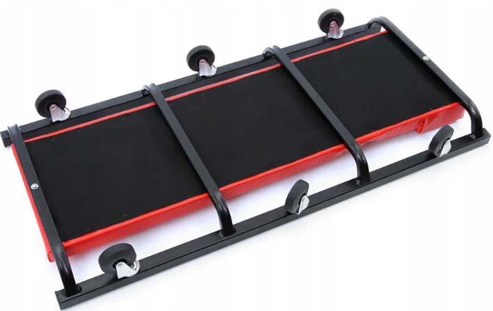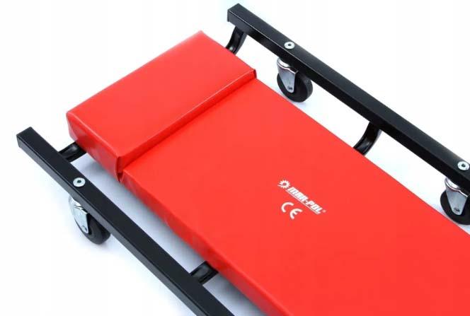 Canapea de atelier cu tetieră, finisată cu vinil. Cadrul de oțel cu șase roți portante cu bile asigură confortul în muncă . Înlocuit , ar trebui să fie în fiecare atelier. Întregul este acoperit cu un burete moale . Tetiera conturata pentru un confort mai bun in munca. Cadru din oțel solid realizat din profil.