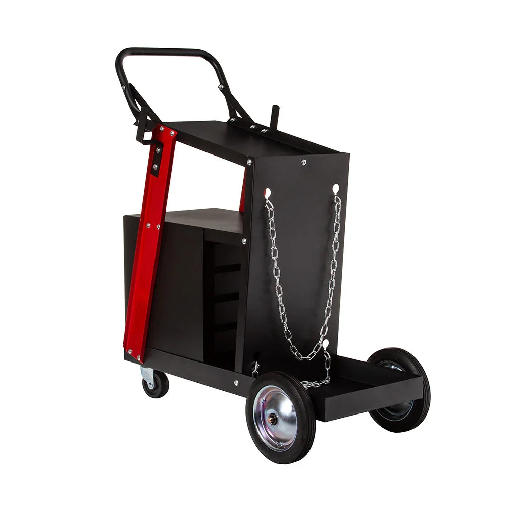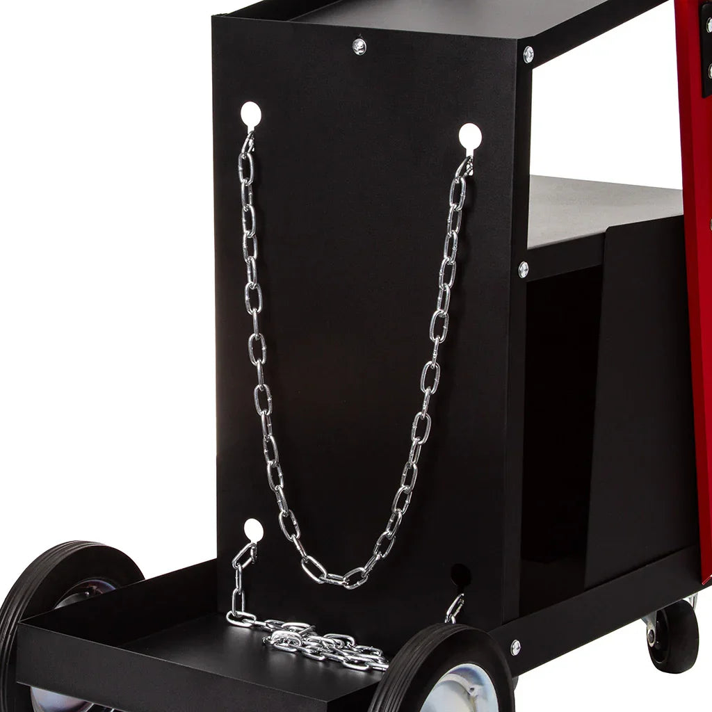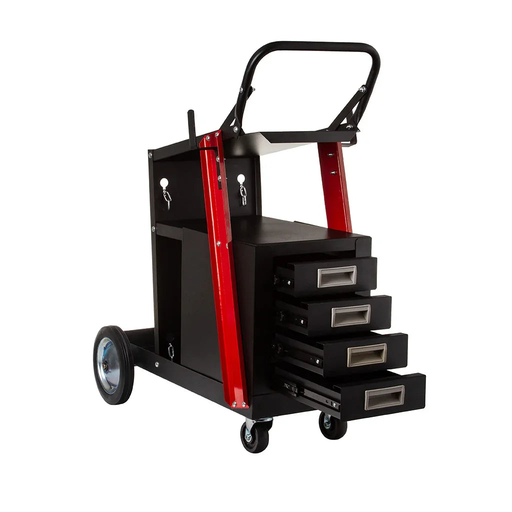 Un cărucior profesional pentru sudură este soluția perfectă pentru transportul seturilor de sudură MIG/TIG sau cu plasmă. Căruciorul are un raft superior extins și 4 sertare care permit depozitarea sculelor. Construcția solidă și durabilă din oțel de cea mai înaltă calitate face ca căruciorul să aibă o capacitate de încărcare până la 60 kg. Roțile mai mari în spate și roțile mai mici în față permit o manevrabilitate ușoară chiar și cu o sarcină grea.