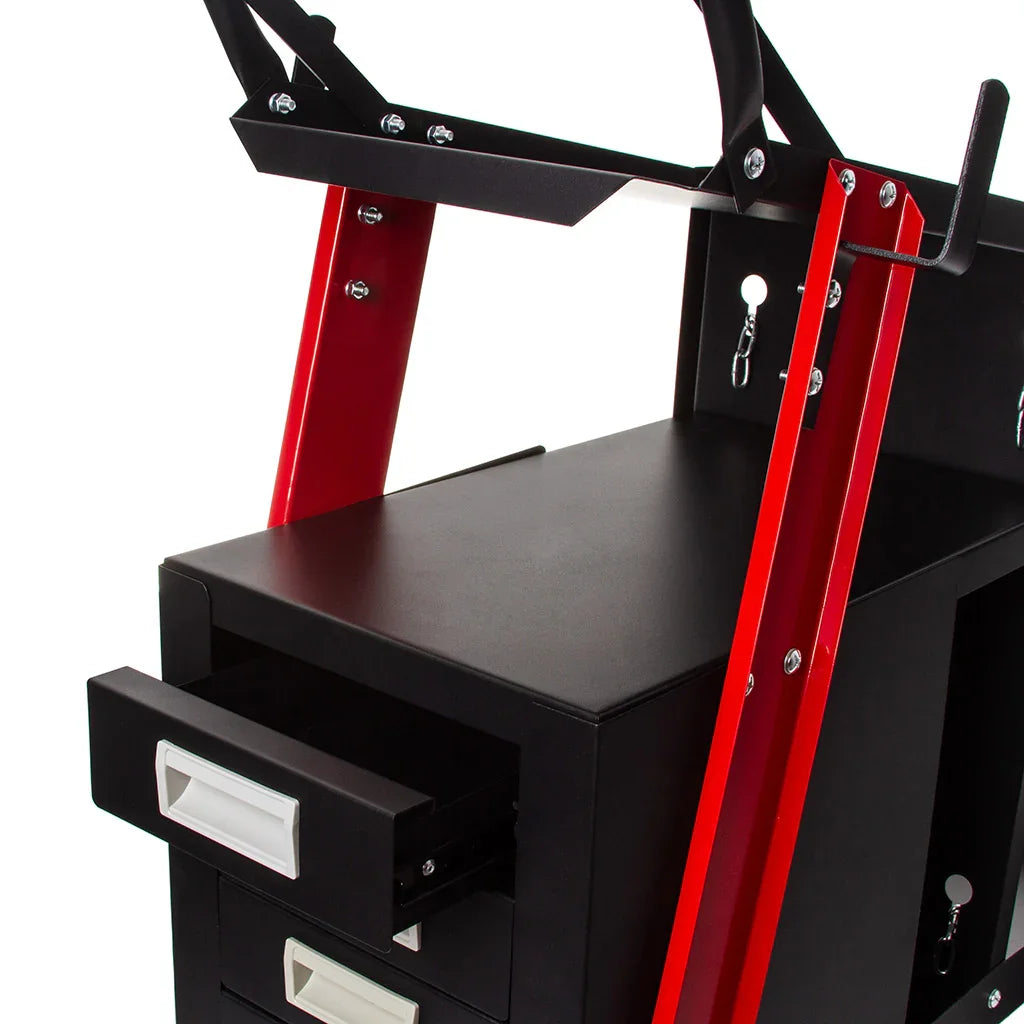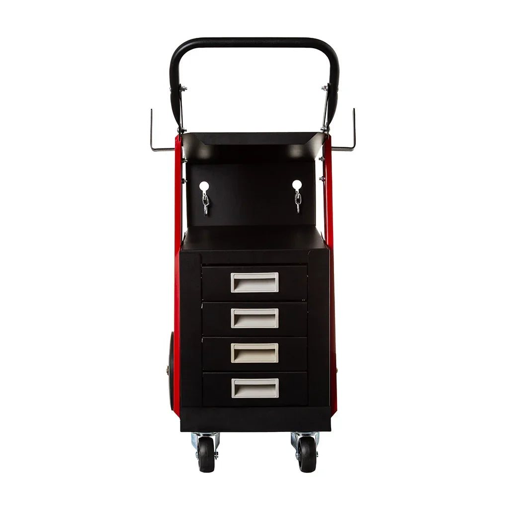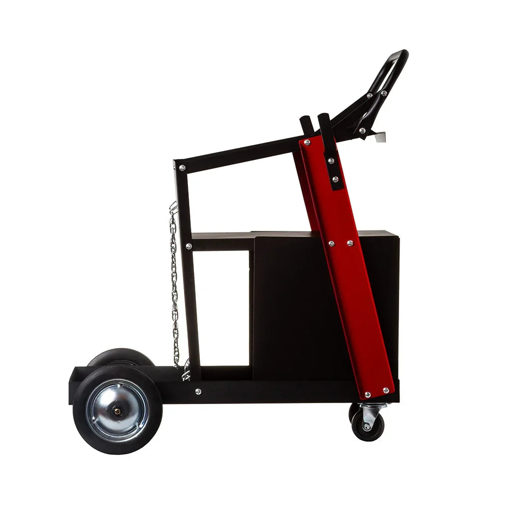 Un cărucior profesional pentru sudură este soluția perfectă pentru transportul seturilor de sudură MIG/TIG sau cu plasmă. Căruciorul are un raft superior extins și 4 sertare care permit depozitarea sculelor. Construcția solidă și durabilă din oțel de cea mai înaltă calitate face ca căruciorul să aibă o capacitate de încărcare până la 60 kg. Roțile mai mari în spate și roțile mai mici în față permit o manevrabilitate ușoară chiar și cu o sarcină grea.
