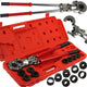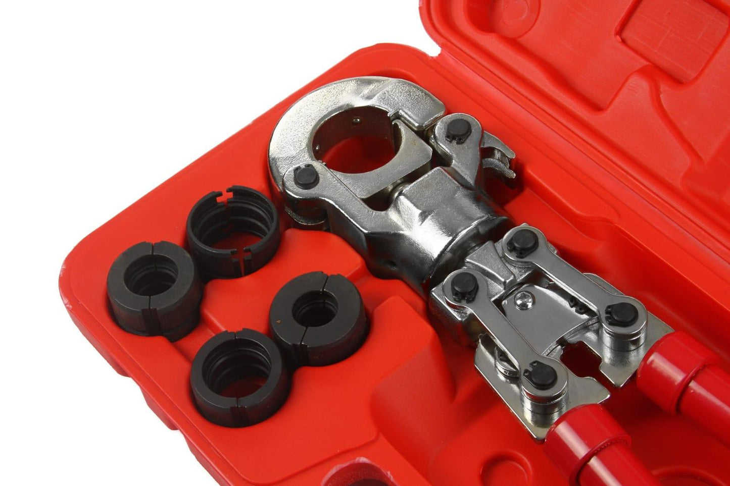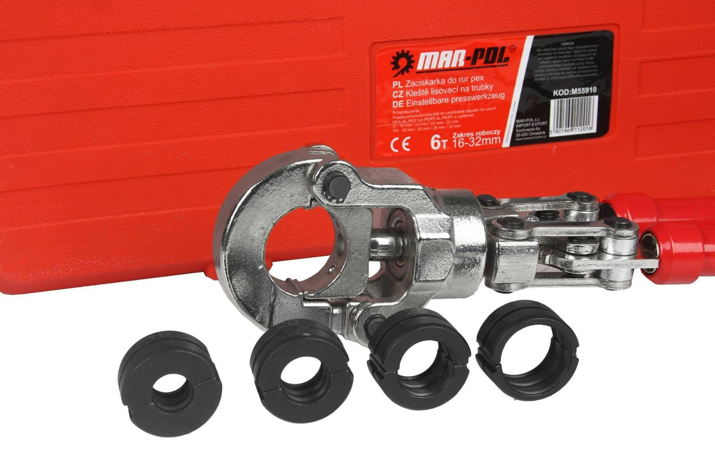 Presă hidraulică manuală pentru conectarea conectorilor pe țevile PEX Vine cu 8 matrițe Mașina de sertizare este echipată cu un cilindru hidraulic care permite prinderea precisă și strânsă a cuplajelor cu forța adecvată. Capul rotativ la 360 ° permite lucrul în locuri greu accesibile, sporind manevrabilitatea și versatilitatea presei. Mânerele telescopice care vă permit să schimbați lungimea, ceea ce vă permite să reduceți forța necesară pentru a strânge conectorul.