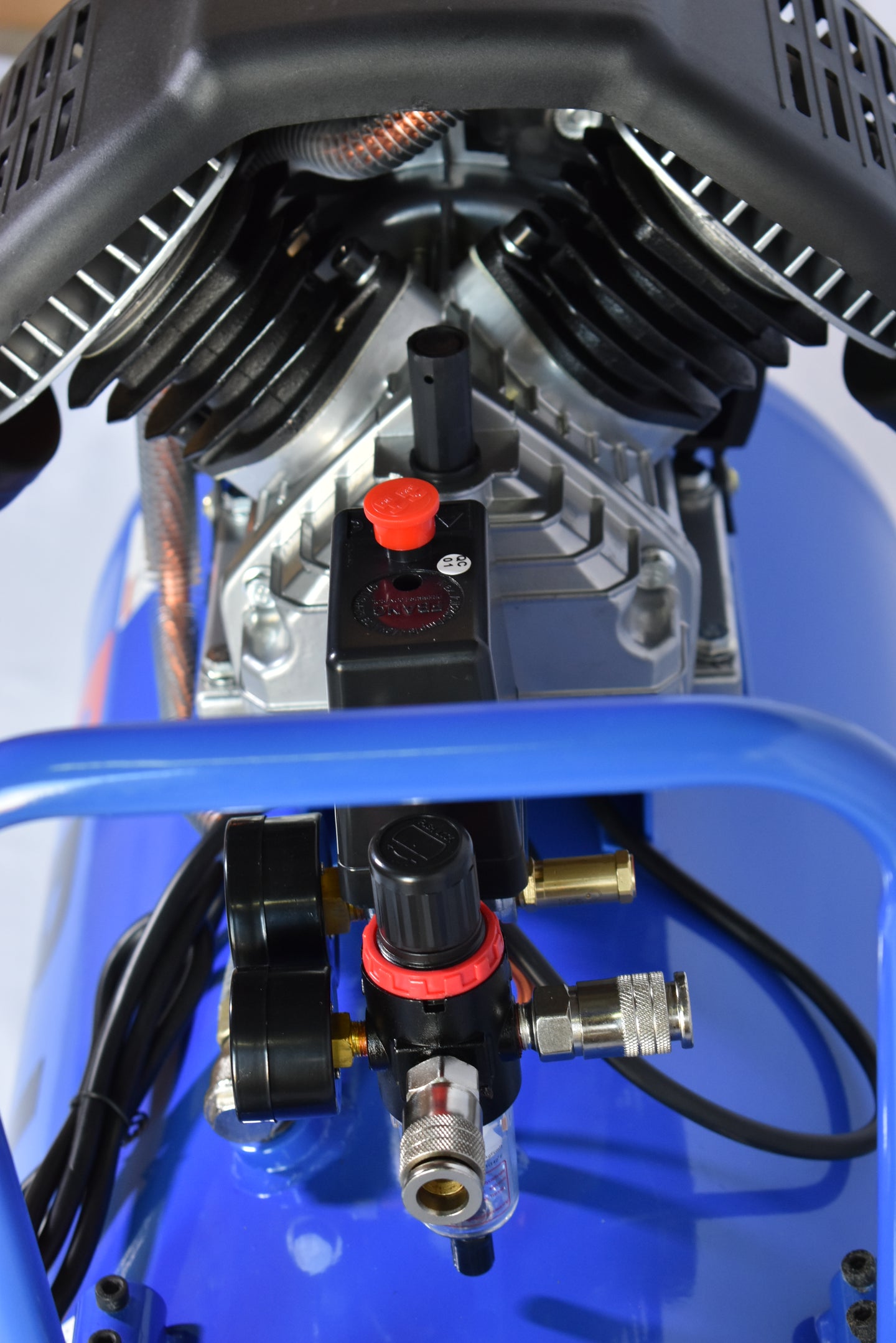 Spre deosebire de compresoarele pe curea, motorul acestui model cu actionare directa functioneaza la 2880 rpm iar debitul de aer produs este mai mare.