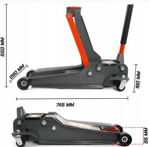 Ascensorul ne permite să lucrăm într-o gamă foarte diversă de min-max (95 - 550 mm) ideal pentru mașinile cu profil redus, cu suspensie sport. Are o supapă de scurgere integrată cu supapa de siguranță. Ascensorul BJC este echipat cu o pompă dublă , ceea ce înseamnă că actuatorul funcționează de 2 ori mai repede decât o singură pompă. Instrument profesional, solid format din material foarte puternic și rezistent la condițiile meteorologice nefavorabile.