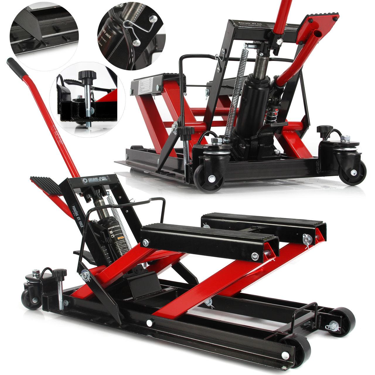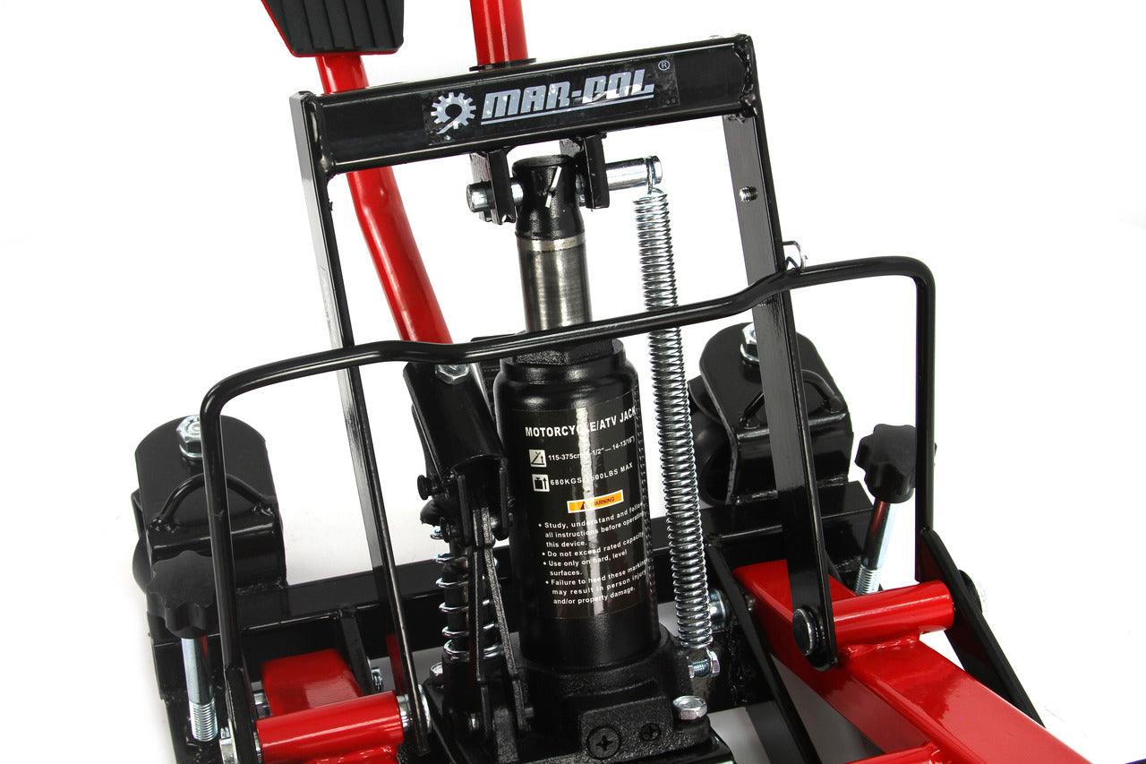Cric hidraulic profesional cu capacitate 680kg, destinat service-urilor pentru ATV-uri, motociclete și quad-uri.