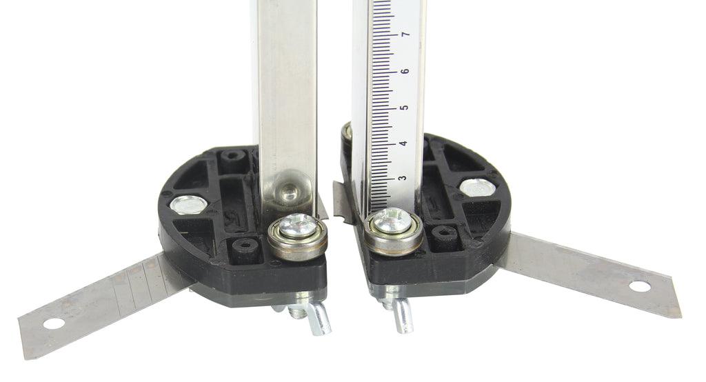 CUTTER PENTRU PLACI DE GIPS Cuțit pentru tăierea simultană a plăcilor de gips-carton din ambele părți. Lungimea maximă de tăiere 600 mm, grosimea maximă a plăcii tăiate până la 11 mm. Are două cuțite lungi de tăiere și un mâner de ghidare. Pentru tăierea rapidă și precisă a plăcilor de gips-carton. Cu acest instrument putem tăia simultan pe ambele părți. Acest lucru asigură o precizie excelentă de tăiere și un timp de lucru redus. Utilizare: Așezați tăietorul pe placa de prelucrat astfel încât brațele cu lamele să fie pe părțile opuse ale plăcii. Setați adâncimea de tăiere dorită. Deplasând cuțitul cu disc într-o mișcare lină, tăiem pe ambele părți în același timp.