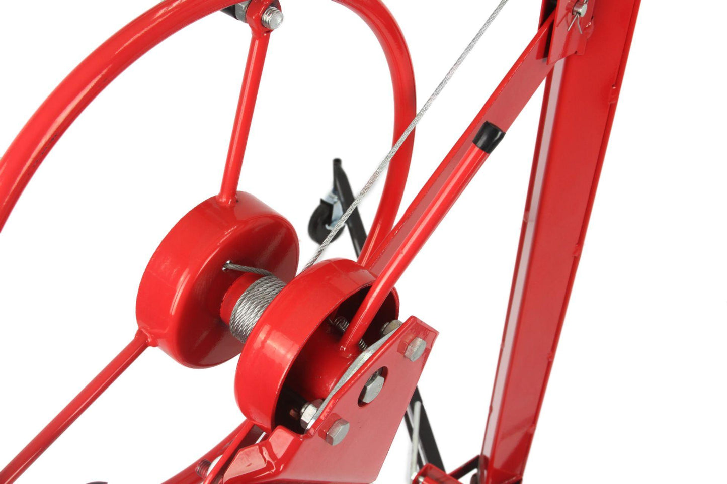Mecanismul este echipat cu o frână proprie, care ne permite să oprim ascensorul la orice înălțime fără teama de pliere în timpul funcționării. Dispozitivul este potrivit pentru montarea chiar și a panourilor mari. După pliere, dispozitivul ocupă foarte puțin spațiu, astfel încât să puteți stoca cu ușurință dispozitivul în camere mai mici. O gamă largă de aplicații Utilizare versatilă în multe lucrări de instalare și finisare. Un instrument ideal și de neînlocuit pentru finisarea lucrărilor, foarte ușor de utilizat, cu un mecanism care previne autoasamblarea. 360 sistem rotativ Datorită sistemului rotativ, facilitează instalarea panourilor pe tavan, pereți și toate pantele. Stabilitatea dispozitivului este asigurată de blocarea roților. Ascensorul are o protecție împotriva căderii brațului. Acest lucru ne permite să ridicăm în siguranță plăcile la înălțimea maximă, fără teamă că partea de lucru nu se va plia în timpul ridicării. Un sistem care facilitează munca Ascensorul este echipat cu un sistem de scripete cu care putem ridica plăcile fără prea mult efort.