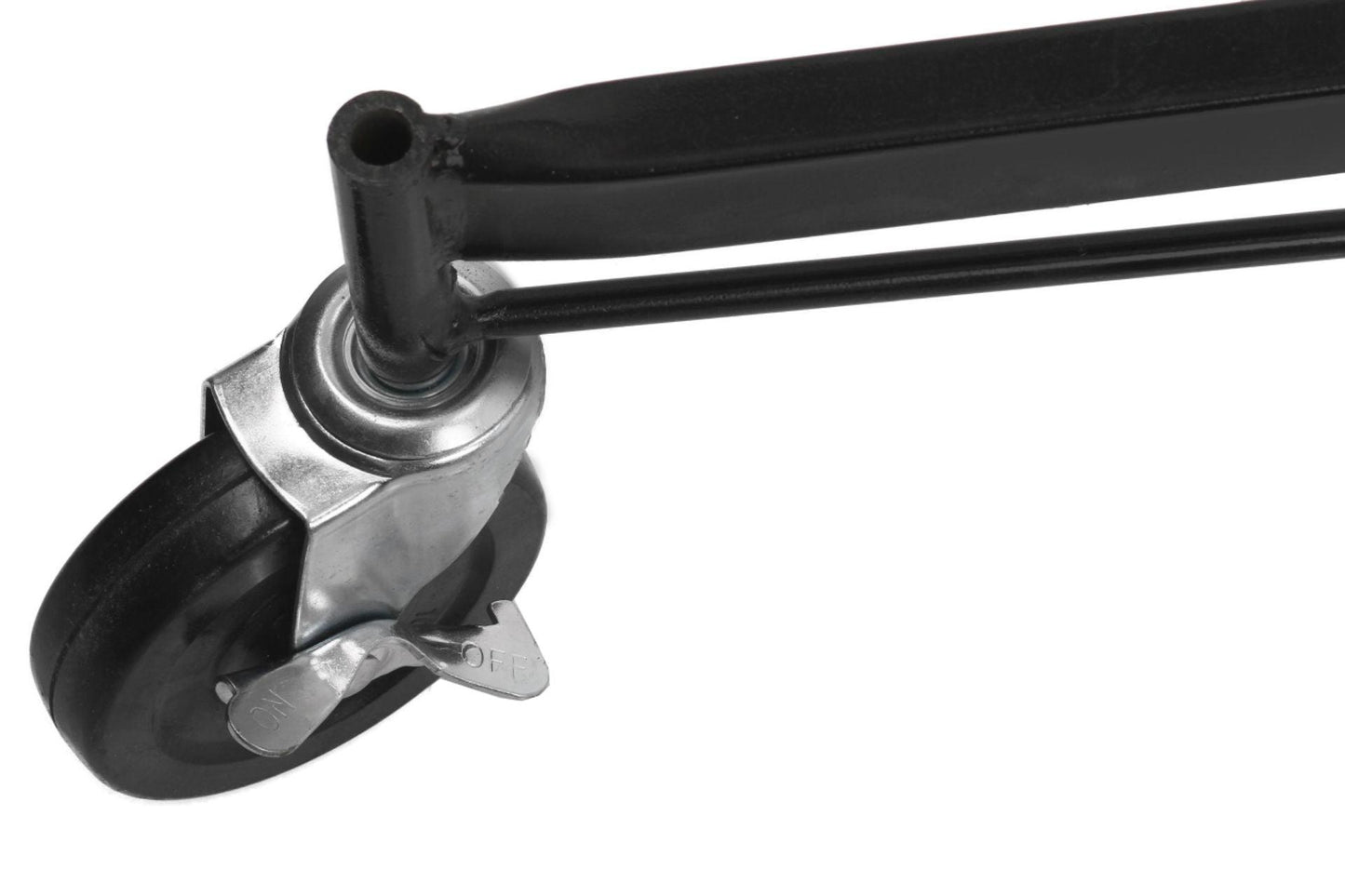 Are o încuietoare dublă !!! + Frâne pe TOATE cele 3 roți Posibilitatea de a plia la o dimensiune compactă, care ne va permite să o încorporăm cu ușurință în mașină ÎNĂLȚIMEA MAX. este de 3,35 m !!! Designul dispozitivului permite montarea panourilor pe suprafețe înclinate și în spații înguste.