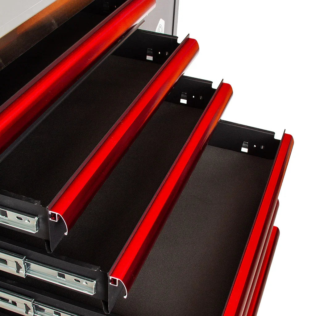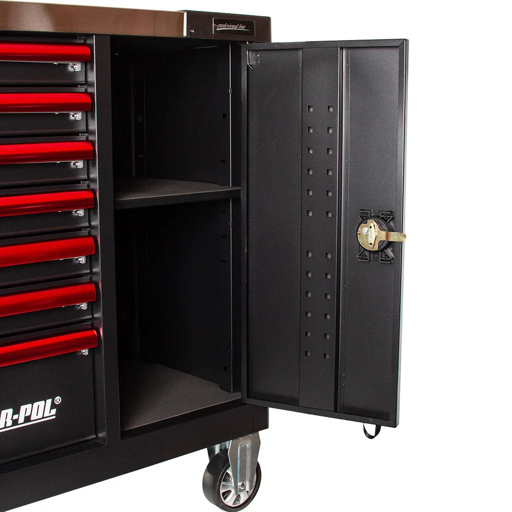Cele 7 sertare spațioase permit o organizare eficientă a uneltelor, iar compartimentul de depozitare este securizat cu încuietoare și cheie. Sertarele sunt dotate cu tampoane de cauciuc pentru deschidere lină și silențioasă.