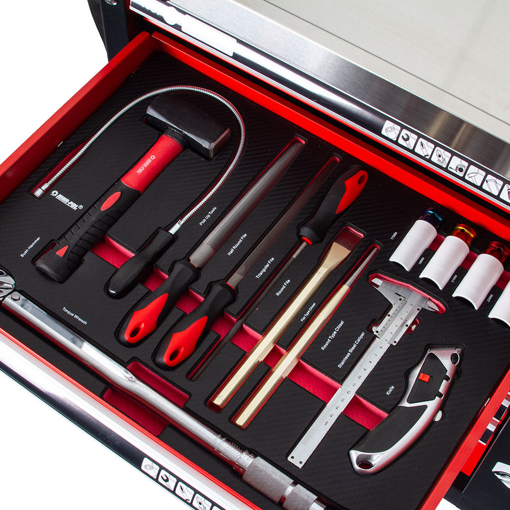 Organizare și securitate — toate uneltele au locul lor grație tavelor preformate, sertarelor cu cheie și blocajelor individuale.