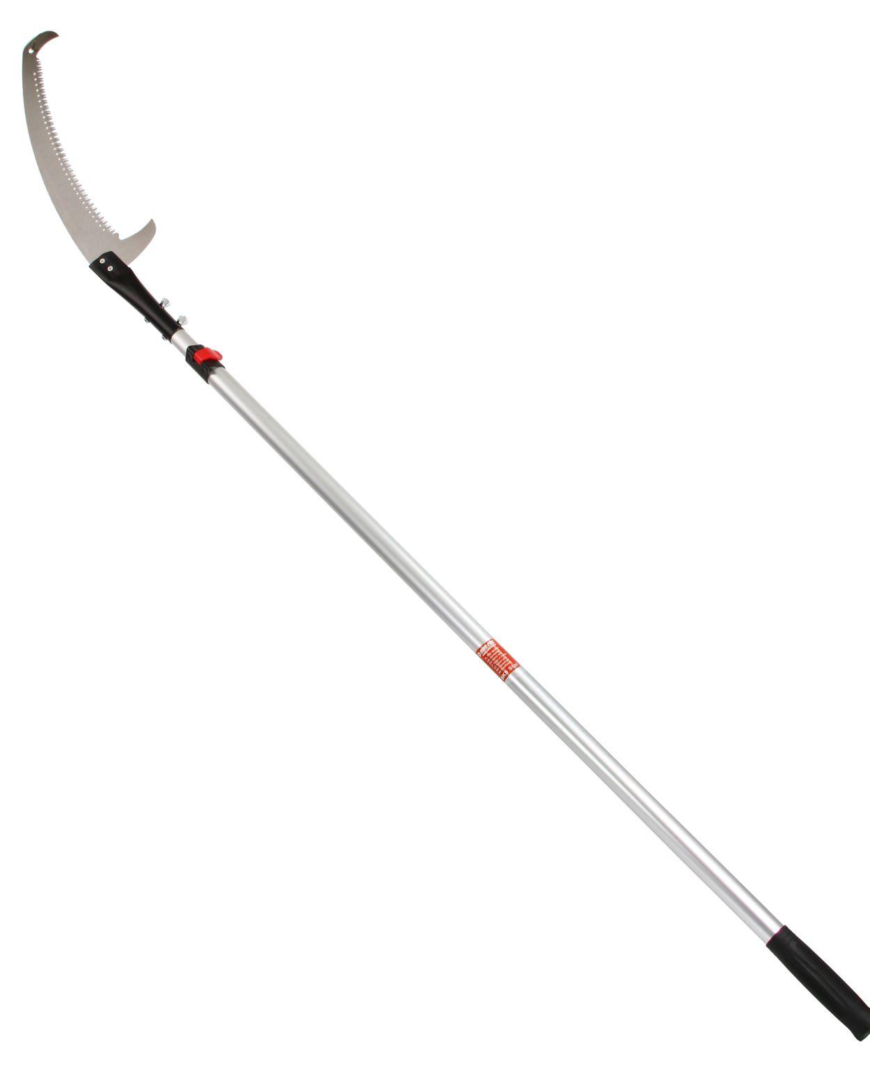 Un fierăstrău solid cu cârlig pe mâner telescopic este un instrument extrem de practic, de neînlocuit mai ales atunci când tăiați și tăiați crengi mai groase și crengi subțiri.