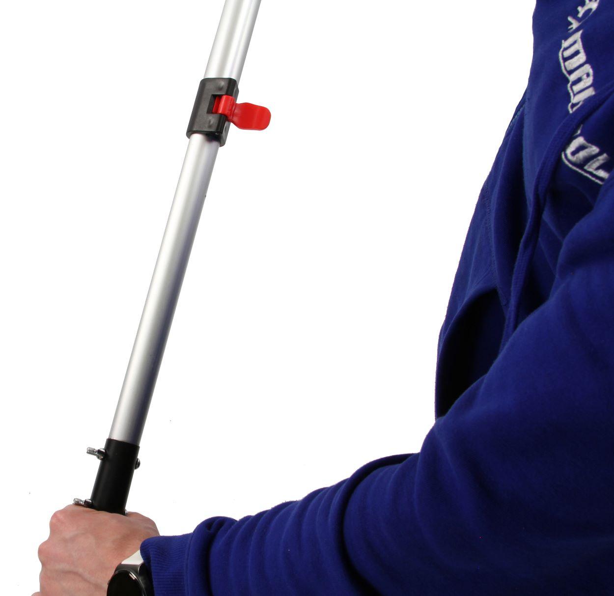Produsul are un maner telescopic care este reglabil de la 135cm la 300cm si o lama din otel intarit SK5.