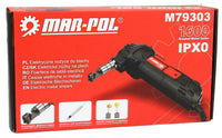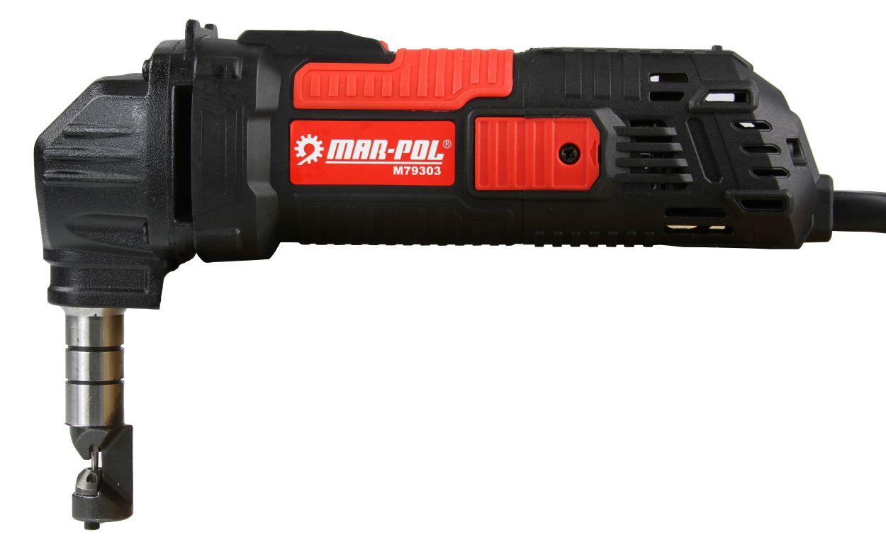 Marca: MAR-POL Ca urmare a cooperării noastre cu fabrici moderne care investesc în noi forme de tehnologie, pentru viitoarele nevoi globale ale secolului XXI, a fost creat un nou brand MAR-POL , nu numai cu design modern, ci și minimalism și calitate puternică în raport cu pretul. Pentru a îndeplini multe sarcini practice în comoditatea și simplitatea lor, vă recomandăm să vă concentrați pe marca MAR-POL și să faceți o alegere înțeleaptă. Conținut kit: Foarfece pentru tablă Cuțit pentru tăierea tablei (poanson + matriță) cheie hexagonală (2 buc) Perii de rezervă Ştampila suplimentară Manual de utilizare în poloneză