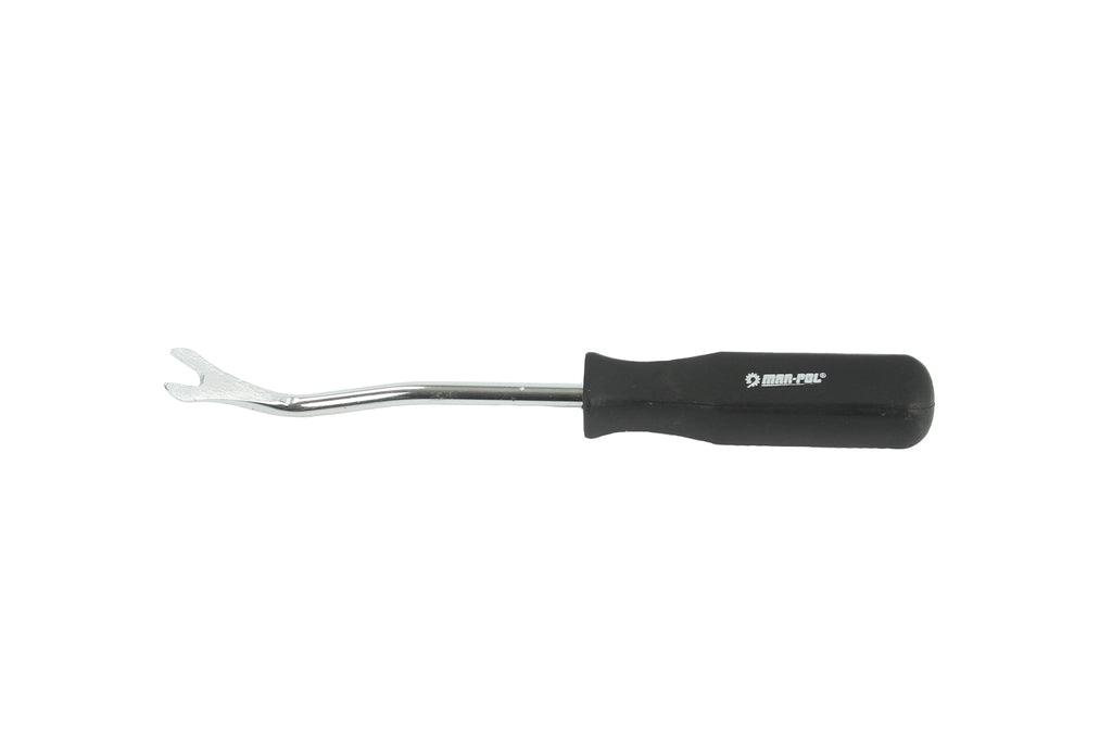 APLICARE: Extractorul de tapițerie este folosit pentru a detașa clemele care leagă diferite elemente din interior și caroseria vehiculului Metoda de utilizare Extractorul eliberează știftul sau șurubul de expansiune din orificiu, folosind structura furcii a vârfului de lucru și pârghia brațului.