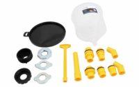 Folosind pâlnia, puteți controla și cantitatea corectă de lichid distribuită. Adaptoarele și conectorii incluse în set vă permit să lucrați cu majoritatea mașinilor.