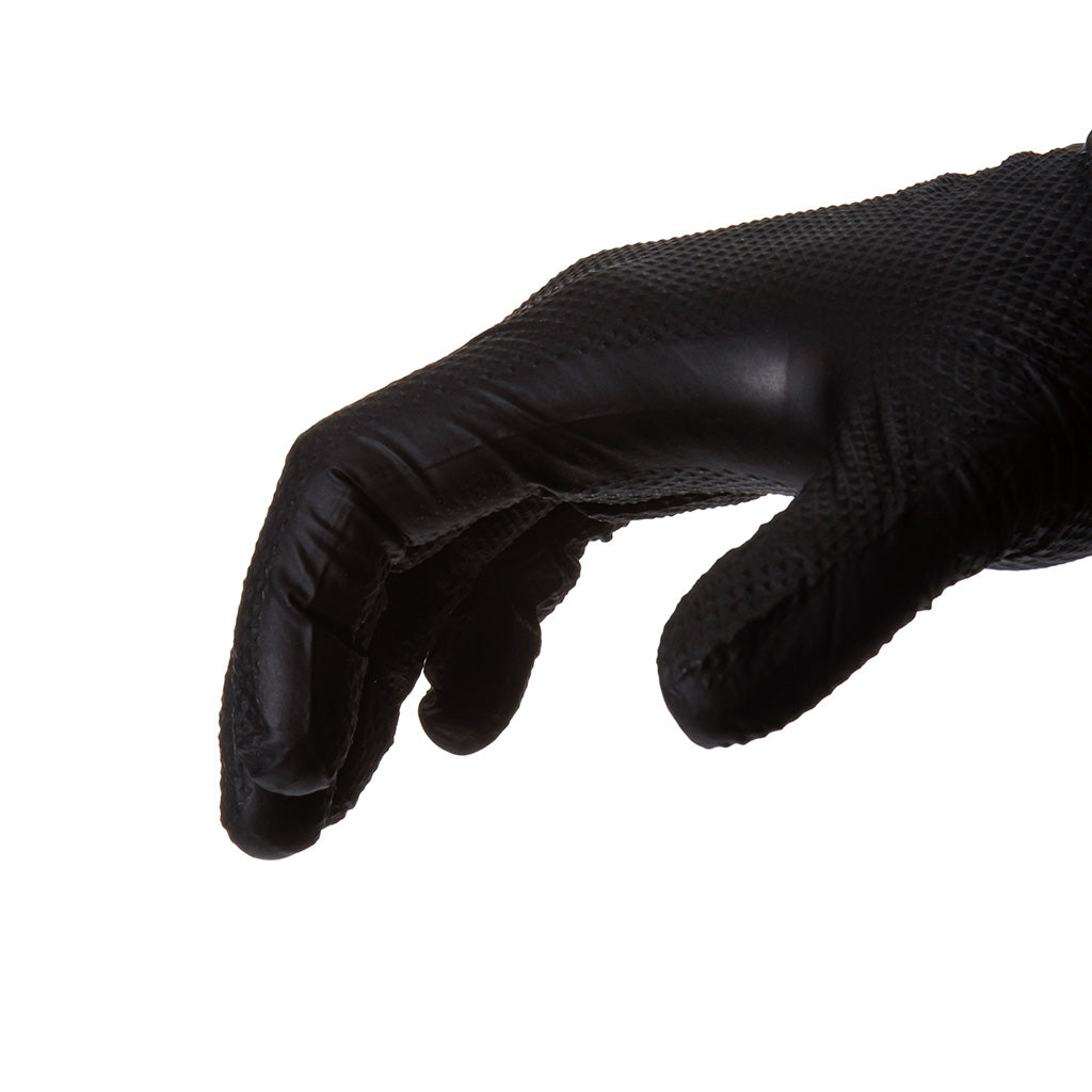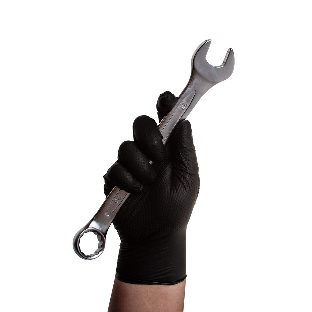 Mănușile sunt realizate din nitril rezistent și elastic, având o grosime de două ori mai mare decât cea a mănușilor standard din nitril, ceea ce asigură o durabilitate sporită. Textura tridimensională tip diamant oferă o aderență sigură, chiar și în medii umede sau uleioase.