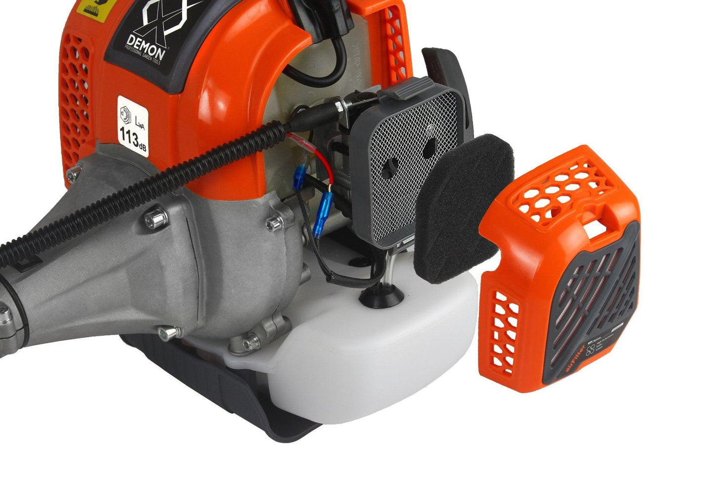 Designul patentat al noii generații de motor de 62 cmc asigură o eficiență mai mare a muncii prin reducerea rezistenței interne. FILTRU DE AER BREVET DEMON
