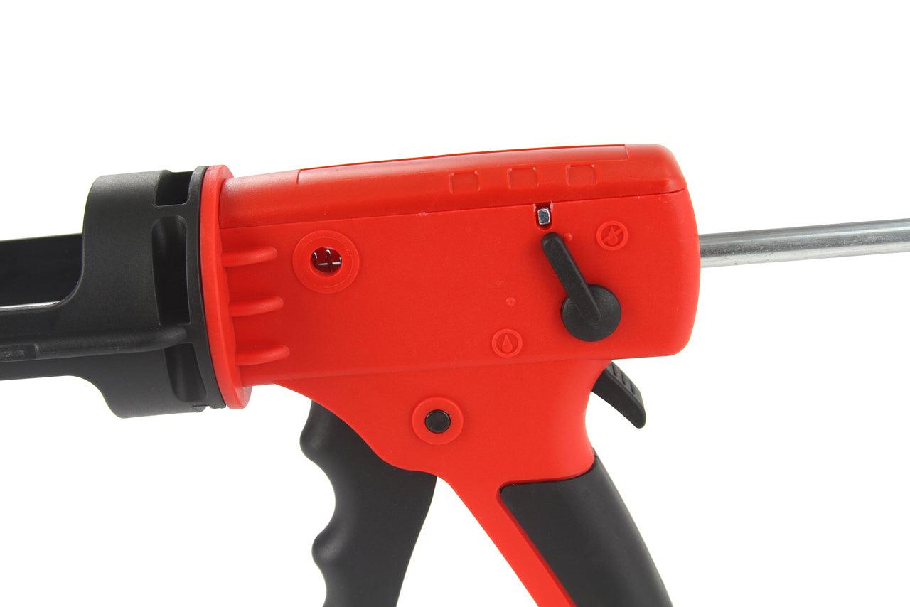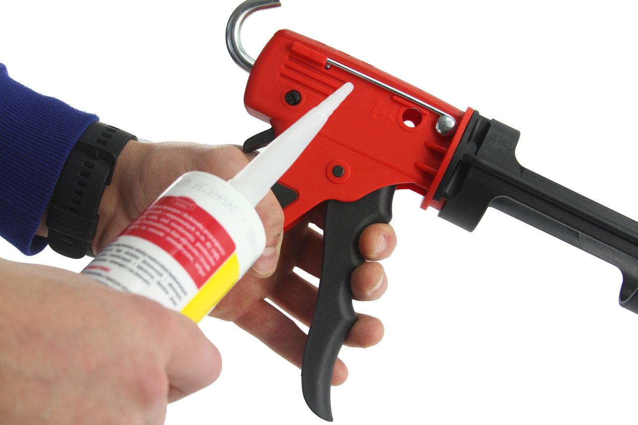 Pistolul este echipat cu un mod adaptat diferitelor tipuri de adezivi pentru a preveni scurgerea acestuia.