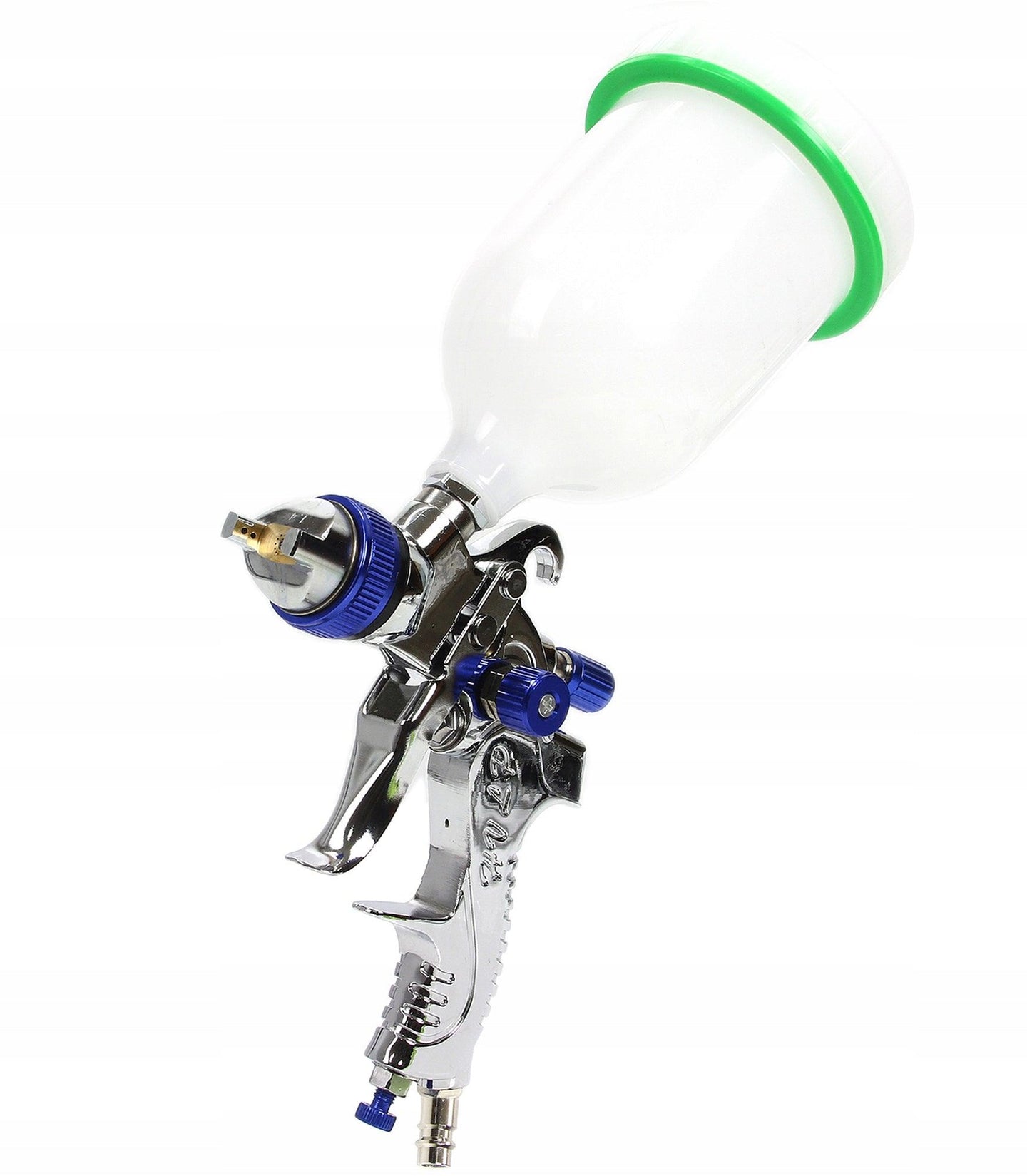 Un pistol de vopsit de înaltă calitate, echipat cu trei reglaje: aer, vopsea și jet Pistolul este echipat cu un mecanism independent pentru activarea aerului și a vopselei. Datorită acestei soluții, atunci când apăsați ușor pe trăgaci, din duză iese aer comprimat, iar apoi, când creșteți presiunea pe trăgaci, iese vopseaua. Acest lucru are un impact mare asupra calității picturii.