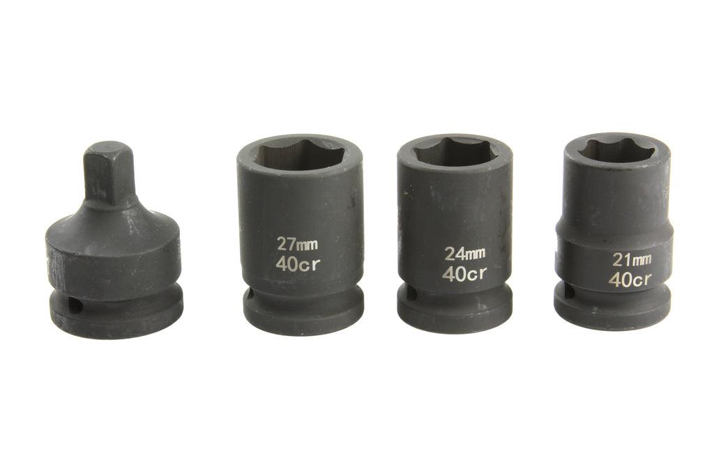 Cheia este echipata cu un maner pentru un confort de lucru mai bun si 3 prize de 27 mm si 24 mm. 21 mm si un adaptor de la 3/4" la 1/2".