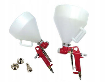 Pistol universal pneumatic pentru vopsire, tencuire, tencuire si sablare . Arma este proiectată pentru vopsirea cu vopsea emulsie, vopsele cu adeziv, pentru înălbirea cu var și pentru aplicarea tencuielilor acrilice pentru izolare. Ideal pentru aplicarea tencuielilor, straturilor de ipsos. Pistol universal pneumatic pentru vopsire, tencuire, tencuire si sablare. Aceasta este o versiune mai nouă a armei. Arma este proiectată pentru vopsirea cu vopsea emulsie, vopsele cu adeziv, pentru înălbirea cu var și pentru aplicarea tencuielilor acrilice pentru izolare. Ideal pentru aplicarea tencuielilor, straturilor de ipsos. Containerul pentru pistol este acoperit la jumătatea distanței, ceea ce face posibilă vopsirea tavanelor fără coate suplimentare, capace sau alte soluții. Pistolul este fabricat în întregime din aluminiu, deci este ușor și ușor de utilizat și ușor de curățat și durabil. Are o supapă cu bilă.