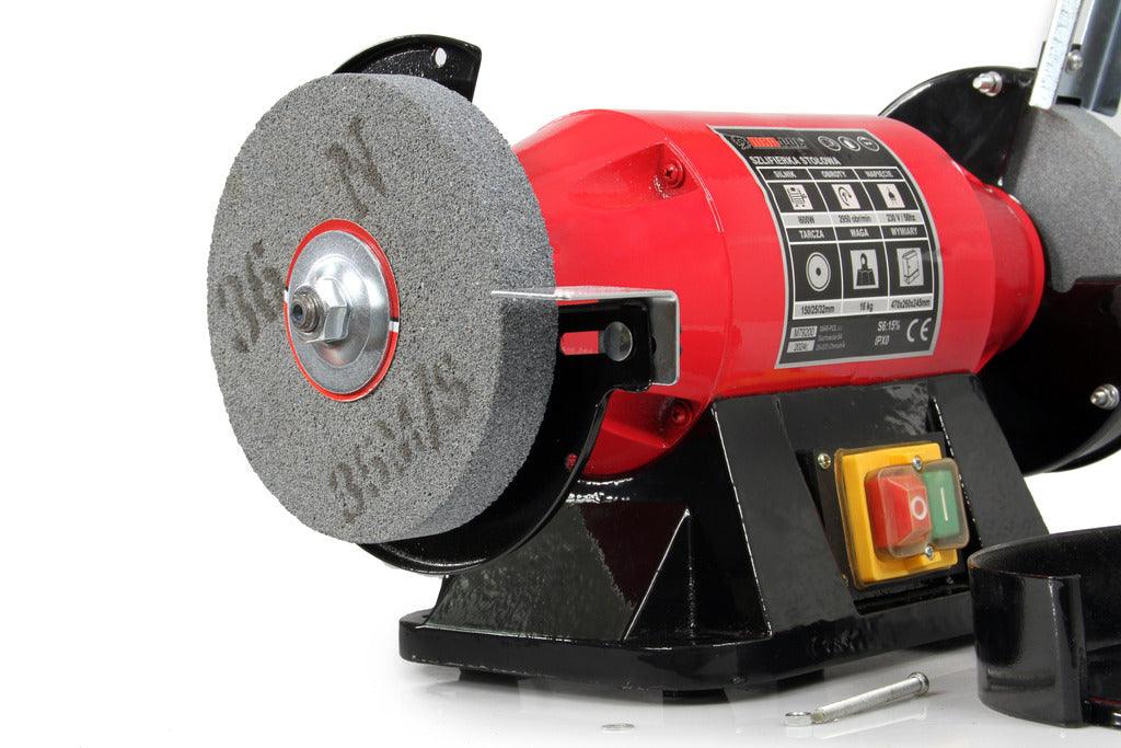 ► Polizorul are două pietre de șlefuit (P60/P30) cu diametrul de 150 mm și grosimea de 25 mm