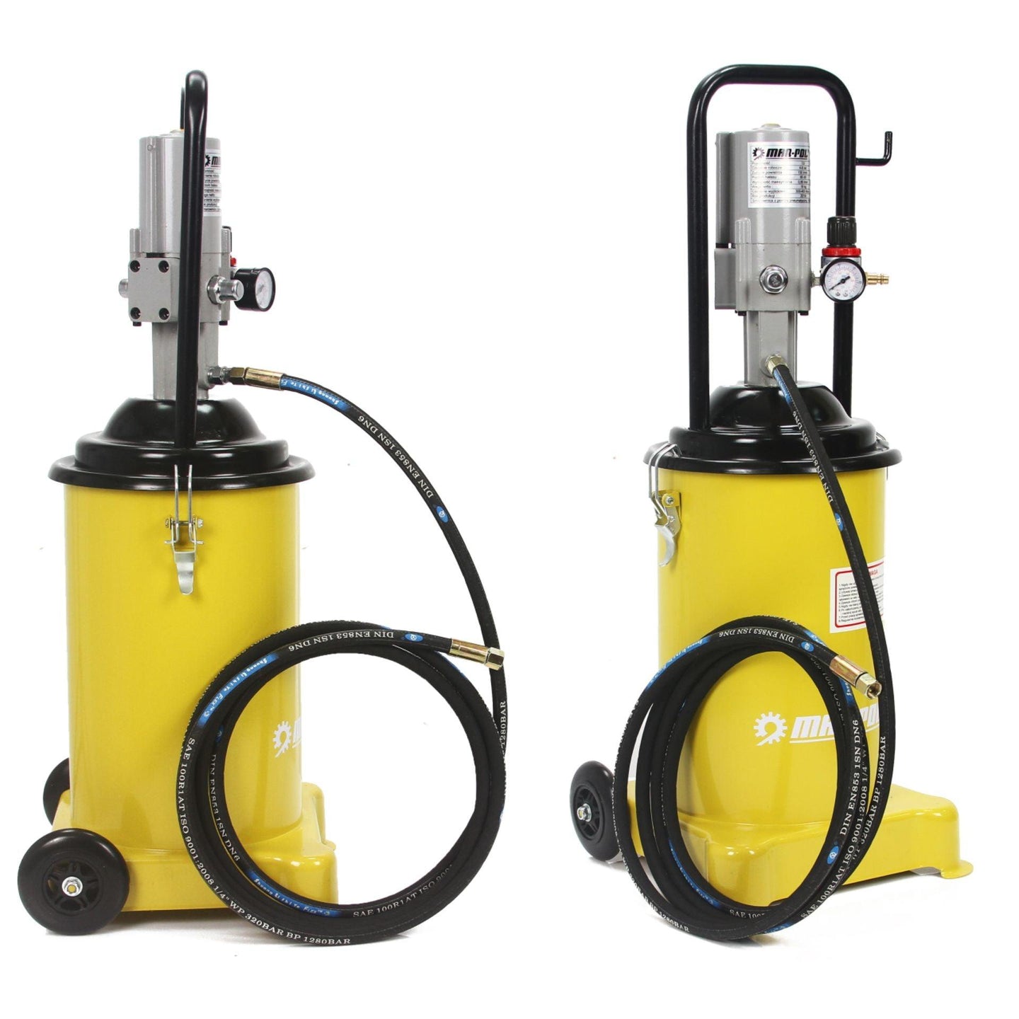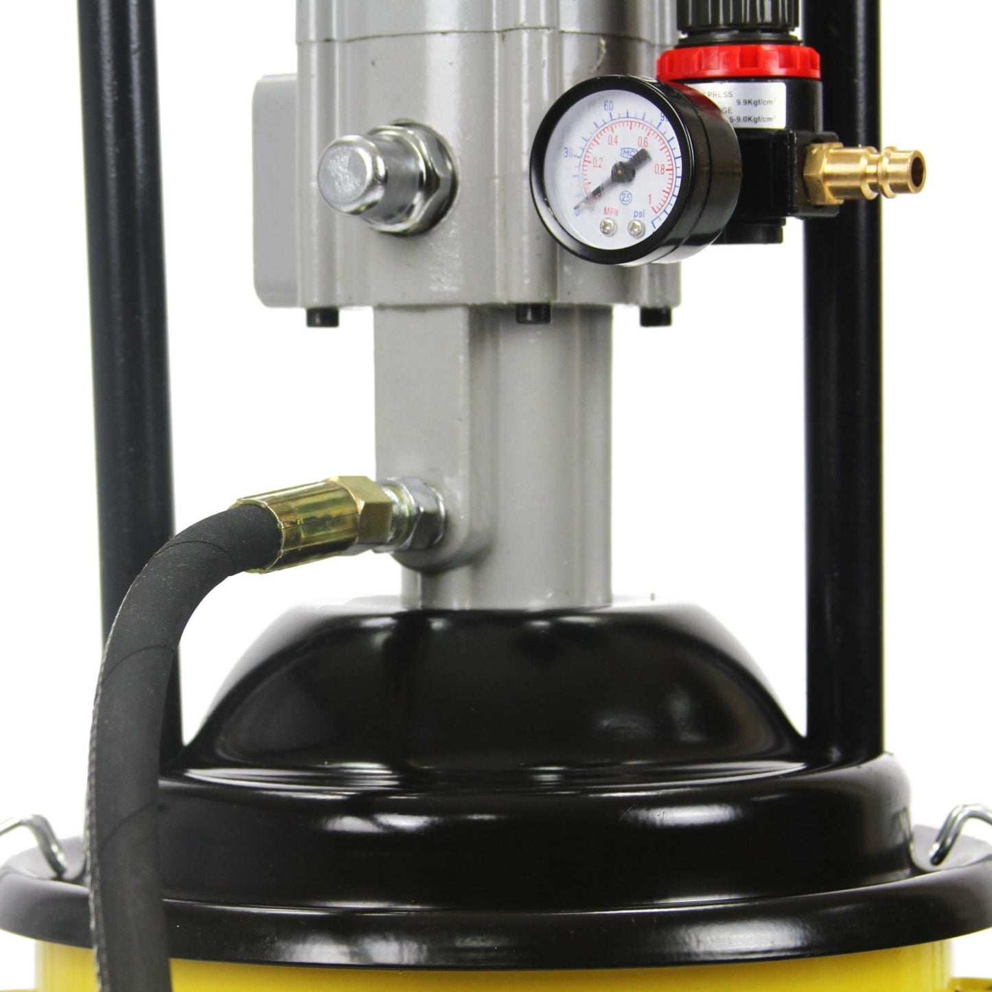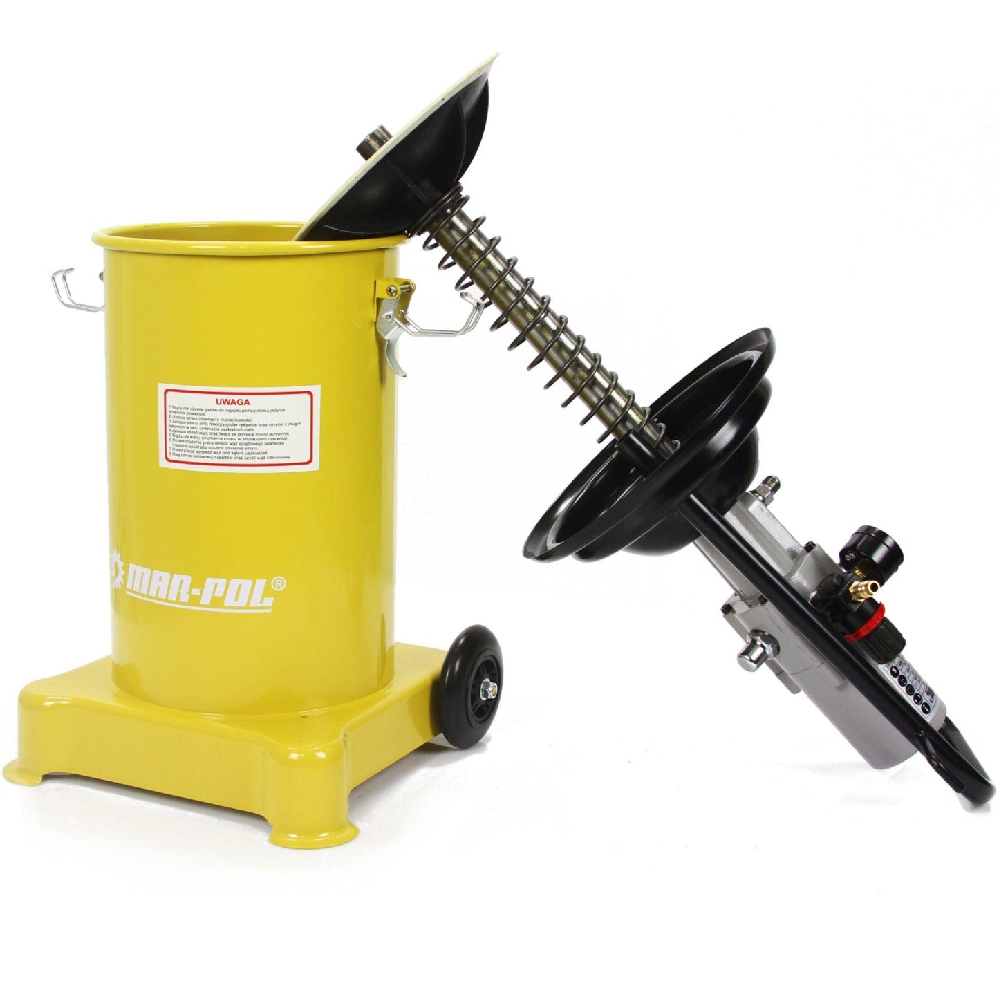 Pompă pneumatică pentru gresare, capacitate 12 litri, destinată atelierelor auto și utilajelor.