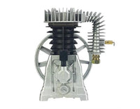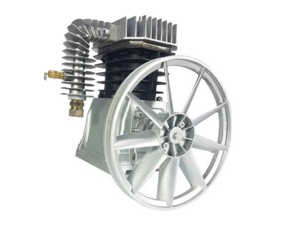 Pompe de aer pentru compresor cu 2 cilindri -lubrifiat cu ulei - echipat cu un răcitor de aer lateral -cilindri din fontă -acționat de o scripetă care răcește compresorul în același timp - compresorul este potrivit pentru rezervoarele cu o capacitate de 100-300 litri