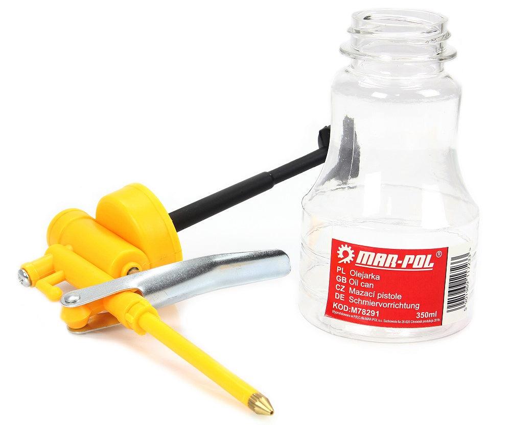 Bidon de ulei profesional cu rezervor de lichid de 350 ml. Bidonul de ulei este un instrument necesar în fiecare atelier, fermă, casă, Datorită aplicatorului rigid, puteți ajunge în locuri greu accesibile, aplicatorul generează un flux puternic și precis de ulei, Este echipat cu sita cu filtru.