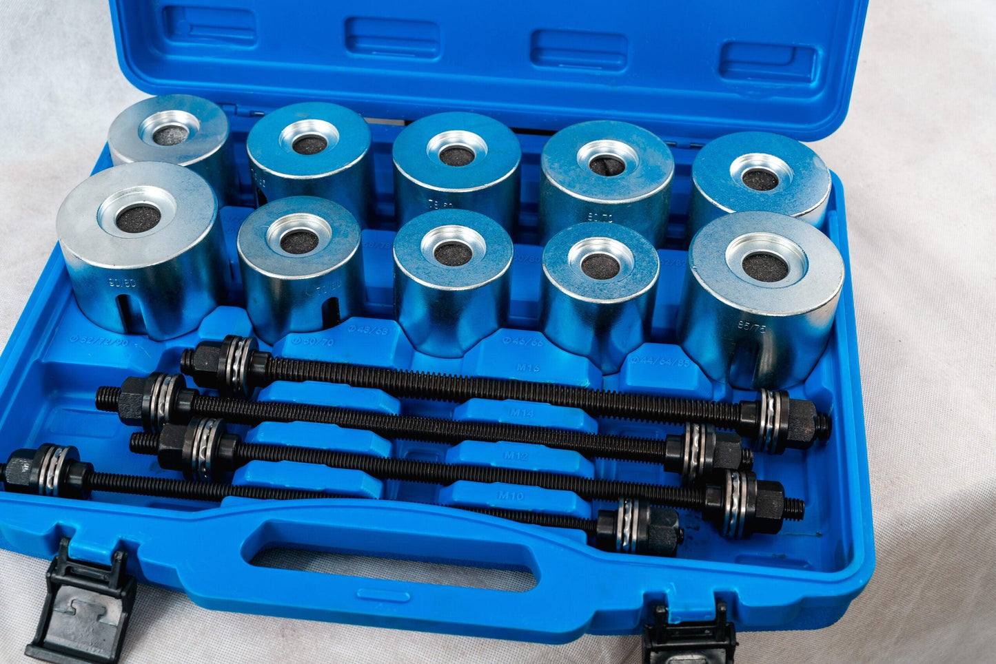 Acest set universal pentru rulmenți și bucșe este un instrument esențial pentru orice atelier mecanic, oferind precizie și eficiență în realizarea lucrărilor de extragere și introducere a componentelor.