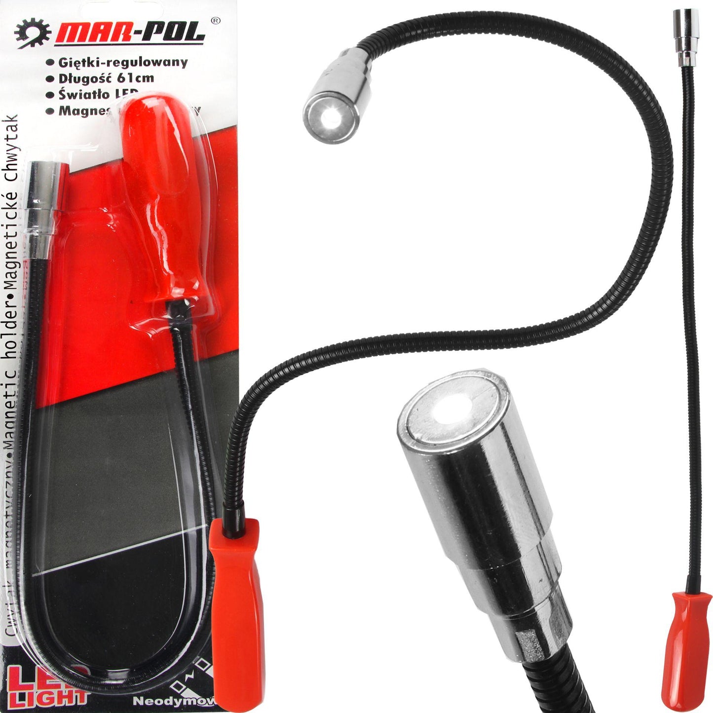 Recuperator magnetic LED cu un magnet puternic din neodim. Ideal pentru ridicarea și mutarea obiectelor metalice. Mâner flexibil cu o rază de lucru de până la 610 mm.