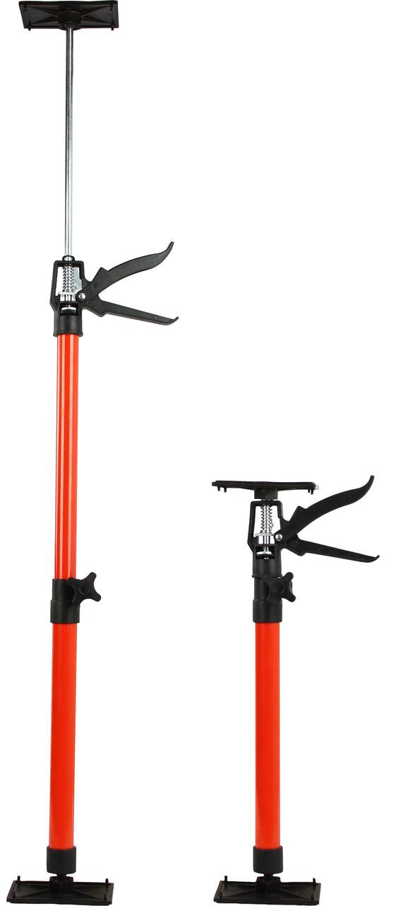 UN SET DE 2 SUPORTURI TELESCOPICE Suport telescopic robust. Acest tip de dispozitiv este perfect pentru instalarea plăcilor de tavan / perete (gips-carton) într-un unghi incomod sau pentru repararea suprafețelor lipite. Funcția telescopică permite reglarea lină și precisă a înălțimii, iar plăcile de presiune basculante și două mânere de asigurare asigură o montare stabilă.
