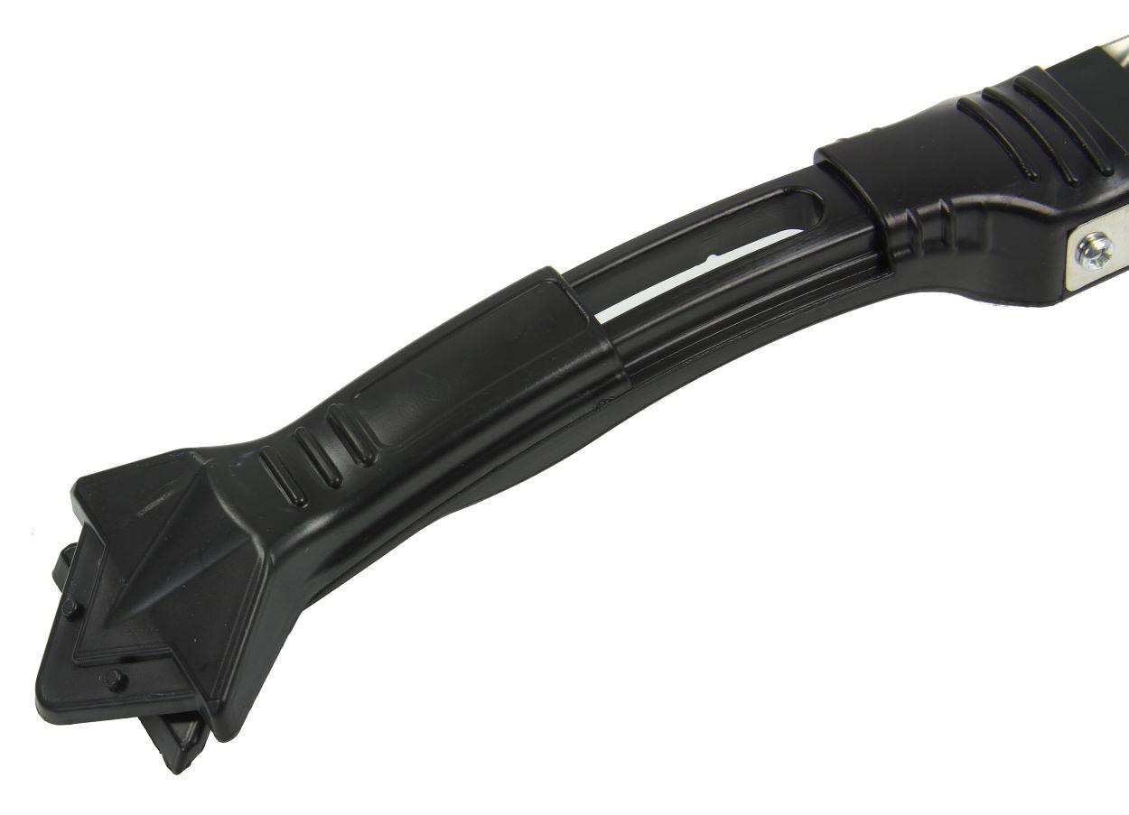 O racleta metalică profilată încorporată în capătul mânerului vă va permite să îndepărtați rapid vechiul strat de silicon.
