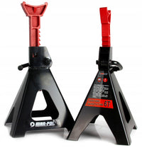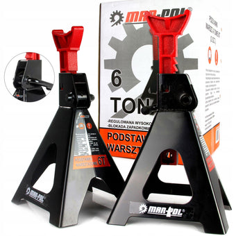 Băncile de lucru sunt realizate din tablă groasă de oțel. Ele sunt echipate cu un mecanism cu clichet care permite ajustarea înălțimii foarte precise pe mai multe niveluri. Suportii pot sustine obiecte de până la 6 tone. Suporti de atelier pentru suspendat mașini, 2 buc Capacitate 6T Calitate superioară Fiabilitate Rezistență Suportii pot ține articole cu o greutate de până la 6 tone . Sunt realizate din materiale de înaltă calitate: tablă groasă de oțel. Au un mecanism cu clichet care permite reglarea foarte precisa a inaltimii pe mai multe niveluri. Suporturile oferă suport sigur și stabil pentru mașină pe șa special profilate. Pârghia de blocare fixează efectiv coloanele de sprijin în poziția selectată. Sunt fabricate din oțel durabil și se caracterizează printr-o structură solidă, sudată. Picioarele suportilor au picioare late sudate, care stabilizează stalierele în timpul lucrului sub sarcină. Compoziția trusei 2 suporti cu o capacitate de ridicare de până la 6 tone
