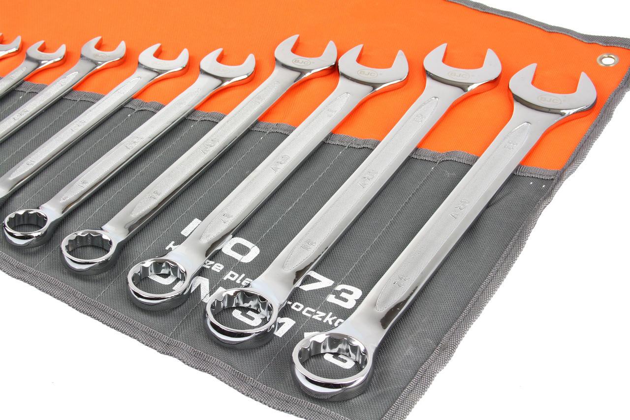 Setul de chei combinate BJC include chei de dimensiuni populare, fabricate în conformitate cu DIN 3113. Oțelul crom-vanadiu de înaltă calitate asigură durabilitatea pe termen lung a cheilor.Date tehnice