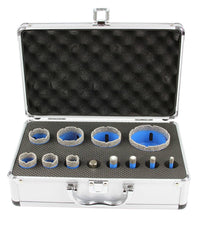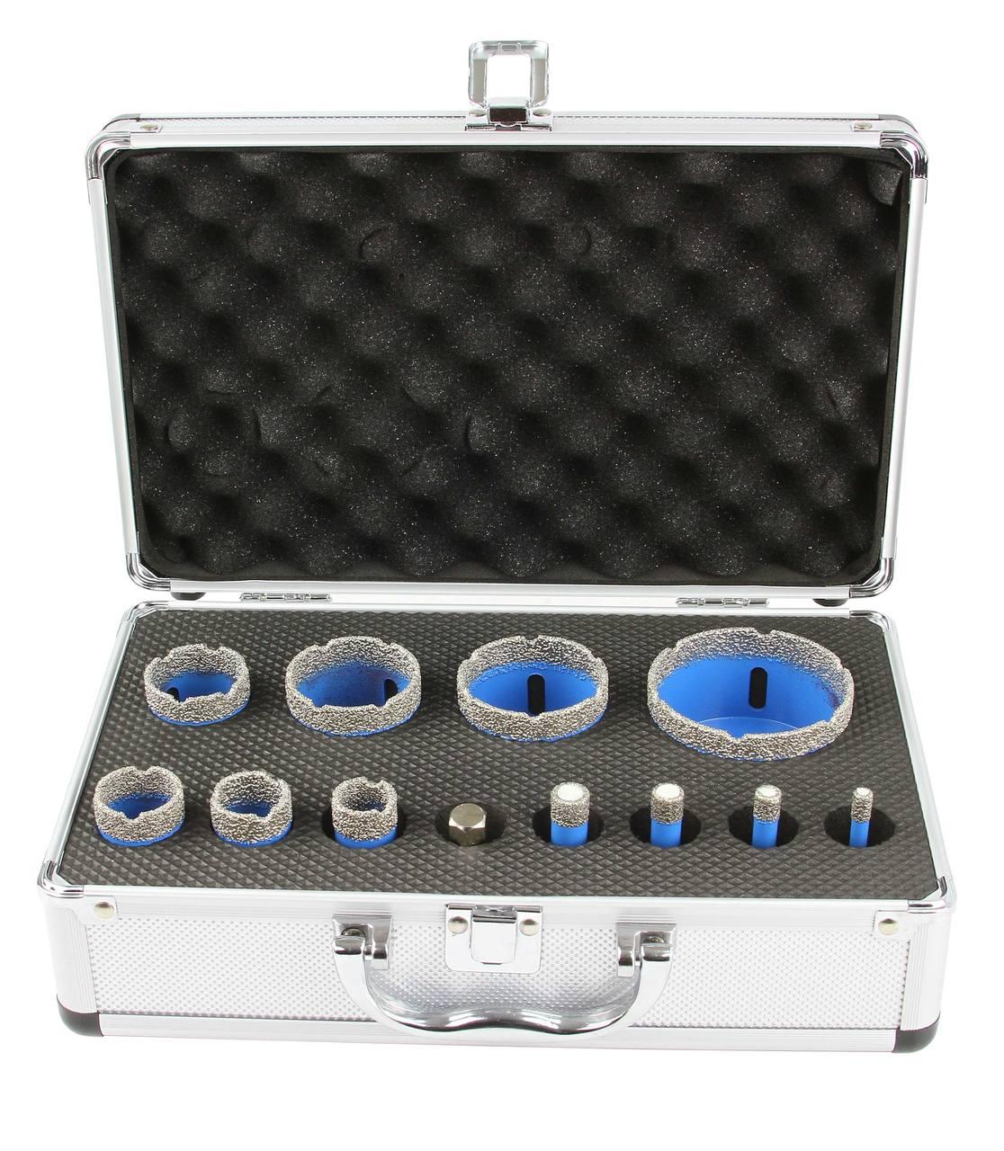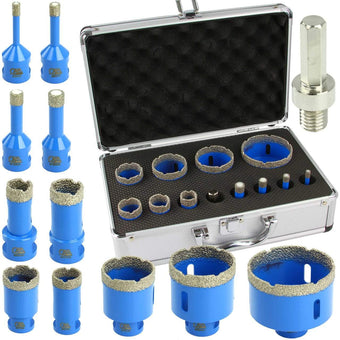 Un set de freze cu diamant cu dimensiuni de la 6 la 68 mm. Echipat cu filet de montare M14 pentru montare pe polizoare unghiulare . Ideal pentru a face gauri in materiale precum: gresie, placi ceramice, clincher, marmura si piatra naturala. Frezele cu gaură de dimensiuni de la 6 la 12 mm au in interior ceară care primește căldură, prevenind supraîncălzirea acestuia. Cu toate acestea, ar trebui să vă amintiți să îndepărtați în mod regulat resturile de pe freza în timpul forajului. FREZE DE LA 6 - 12MM SUNT TRATATE CU CEARA PENTRU O MAI BUNĂ DISIPARE A CĂLDURII ÎN TIMPUL LUCRĂRII SETUL INCLUDE UN ADAPTATOR M14/HEX