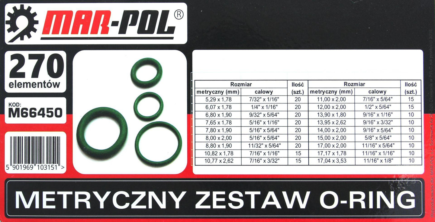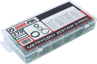 270 de inele O în 18 dimensiuni populare set de 270 bucati ORINGurile HNBR SUNT FOARTE REZISTENTE LA: diferite tipuri de combustibil, de exemplu, motorină, benzină diferite tipuri de uleiuri gaze acide Un set de inele O de înaltă calitate, ambalat într-o carcasă de plastic închisă și securizată, la îndemână, cu mâner. O-RINGURI, GARNITURI METRICE PENTRU AER CONDITIONAT set compus din 270 buc. grupate în 18 dimensiuni diferite.
