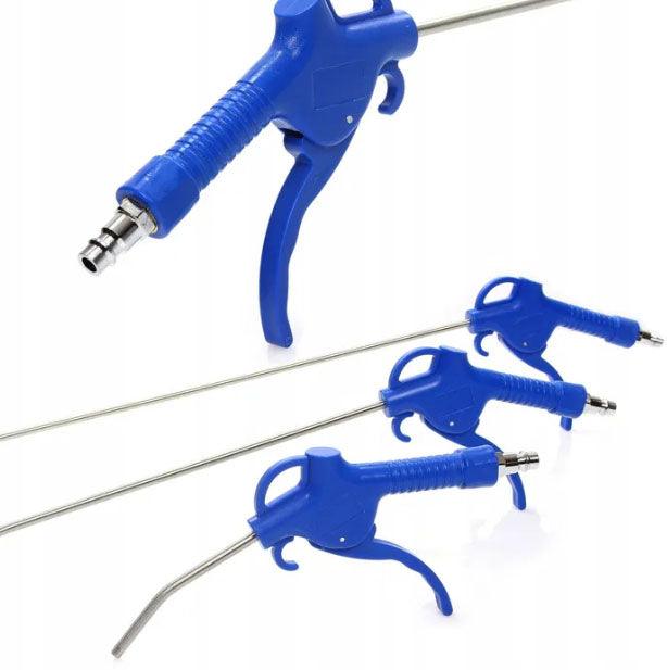 Set de înaltă calitate pentru suflare precisă, util în eliminarea impurităților din locuri foarte inaccesibile. Setul include 3 arme cu duze îndoite de 100, 300 și 500 mm. Pistolul este confecționat solid, iar construcția sa garantează că va fi durabil și extrem de util. Toate elementele setului se caracterizează printr-o manoperă ridicată, perfectă Reglarea debitului de aer Include 3 pistoale cu duze: 100, 300, 500 mm