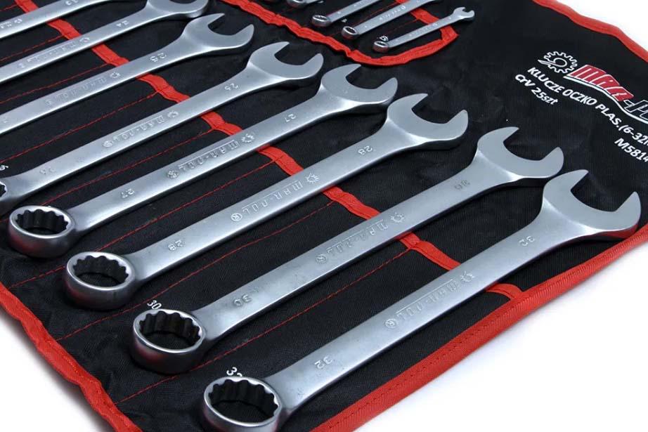 - Cheile sunt confecționate din oțel crV-vanadiu crV. Capăt de 12 puncte al cheii Suprafața de lucru înclinată cu 15% (simplifică manevrarea cu cheia)