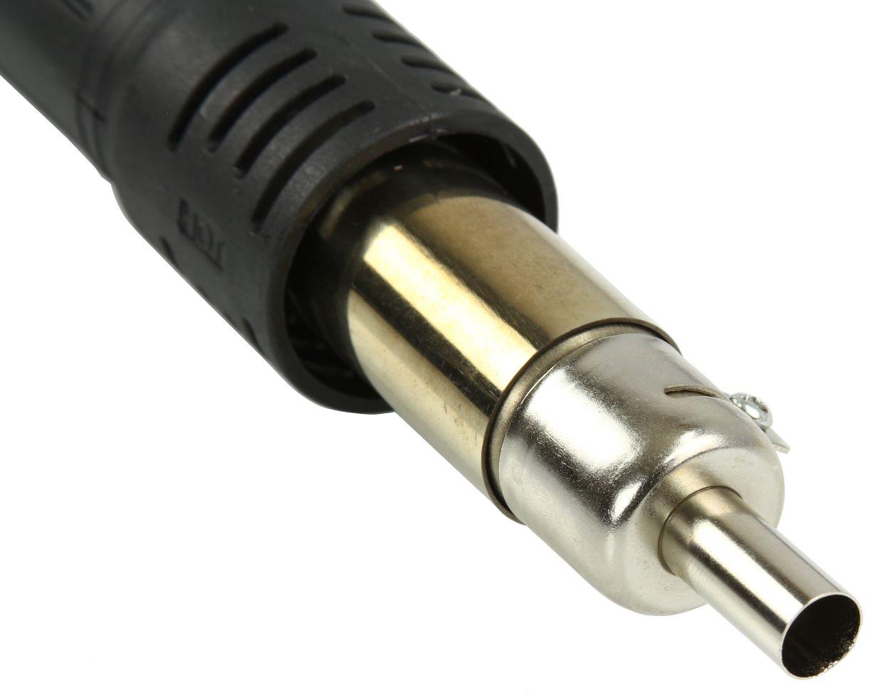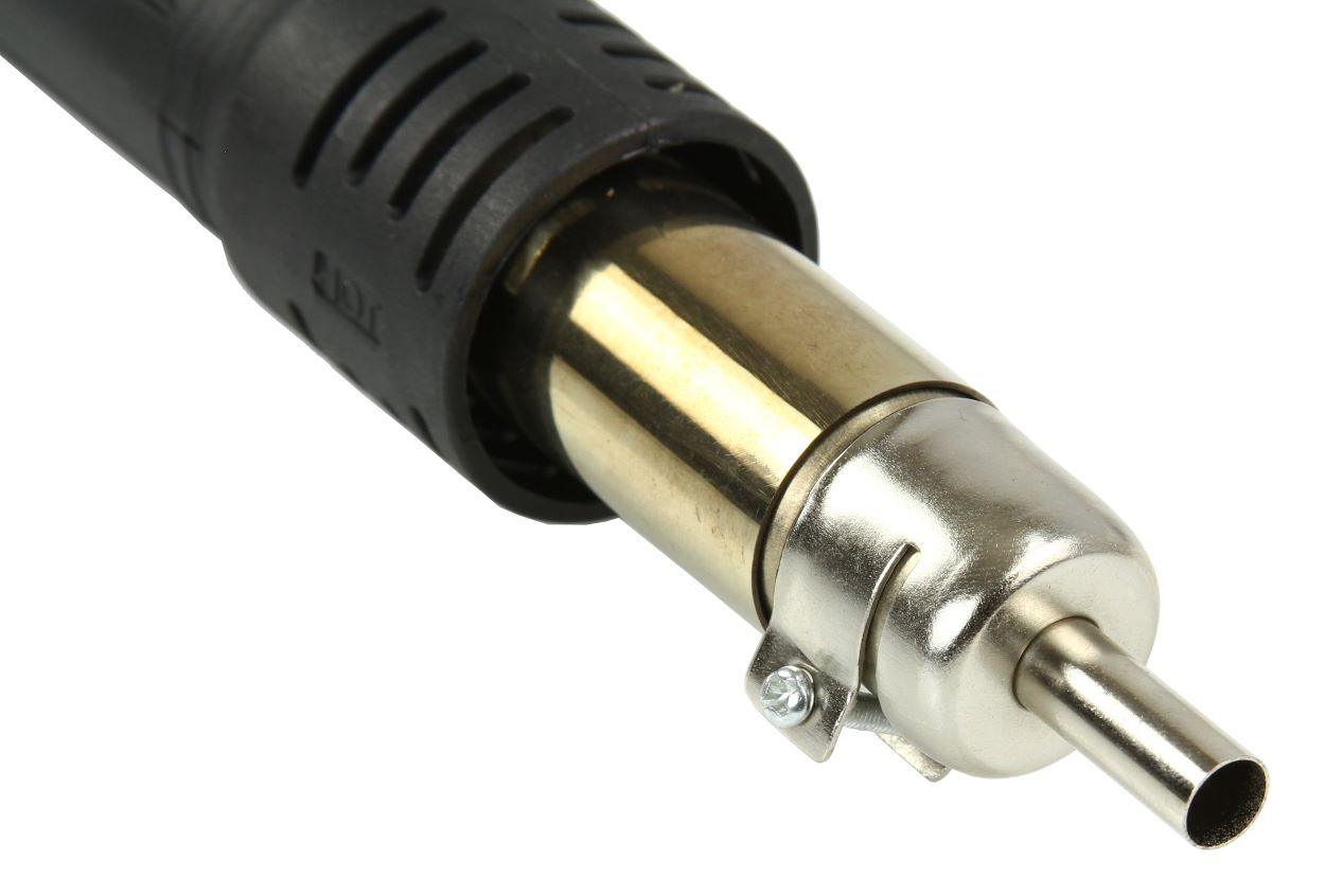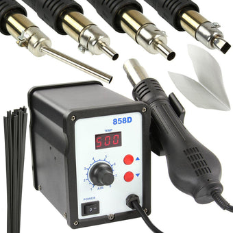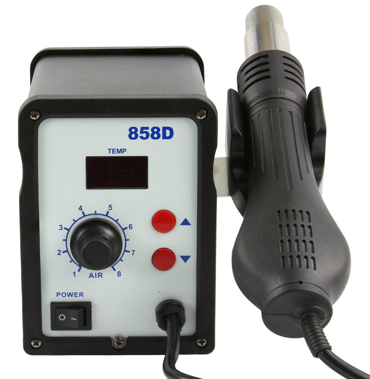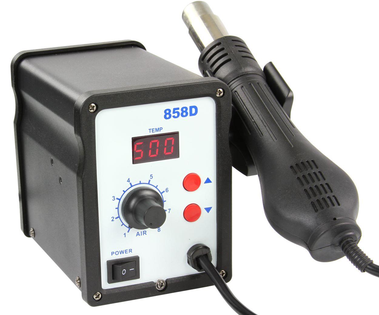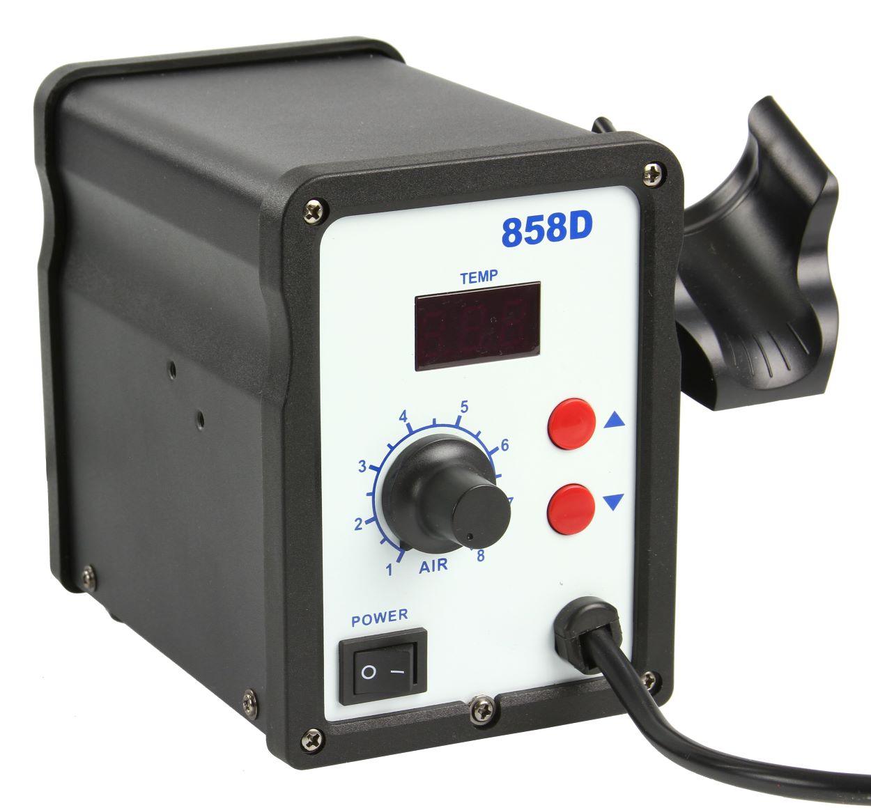 Aparatul se caracterizeaza printr-o carcasa compacta ce ocupa putin spatiu.Statia are o temperatura reglabila de la 100°C la 500°C si putere de suflare. Stația este realizată din materiale mult mai bune decât dispozitivele concurente de construcție Această soluție prelungește în plus durata de viață a elementului de încălzire. După ce scoate din nou stocul din stand, stația revine automat la valorile de debit de aer și temperatură setate anterior.