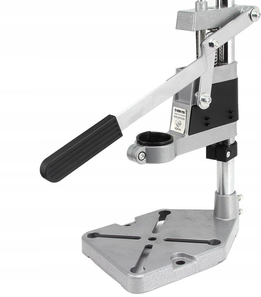 Acest suport transformă burghiul într-un dispozitiv multifuncțional și practic. Adancime de gaurire 60 mm. Suportul vă permite să schimbați vertical poziția burghiului montat,datorită acestui fapt, este posibilă o funcționare stabilă, reducând probabilitatea de rupere sau deteriorare a burghiului. Un dispozitiv excelent pentru găurirea precisă a găurilor în diverse materiale. Corpul este realizat din aluminiu, făcând totul ușor și durabil. Operarea burghiului atașat se reduce la controlul pârghiei cu arc, permițând burghiului să revină automat la poziția de pornire. Suportul are un suport universal pentru majoritatea mașinilor de găurit de mână 25 - 43 mm.