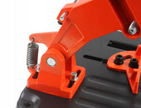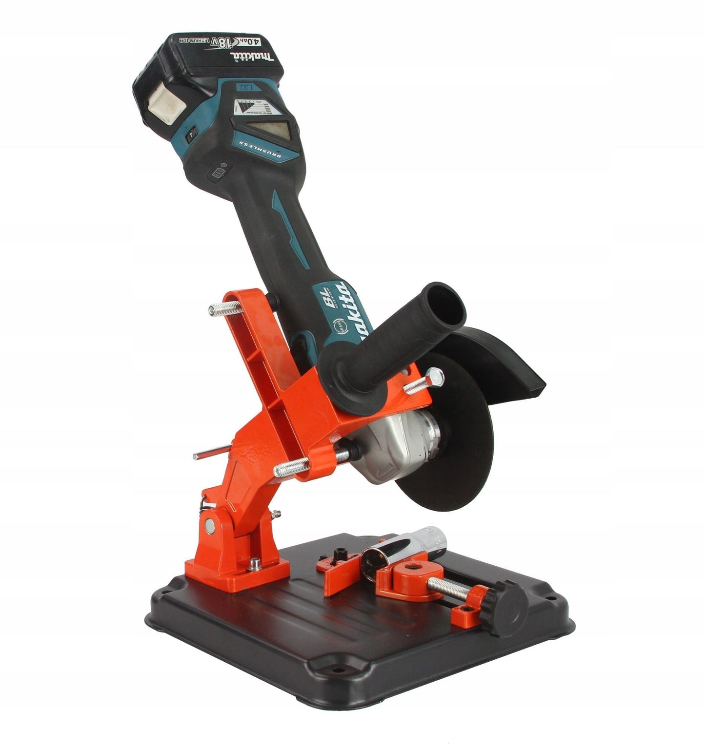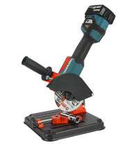 Menghina rotativă vă permite să reglați unghiul de tăiere în intervalul de la 0 la 45 °. Un capac suplimentar protejează utilizatorul de scântei. STANDUL ESTE ADAPTAT PE FLEXURI ELECTRICE SAU CU BATERIE