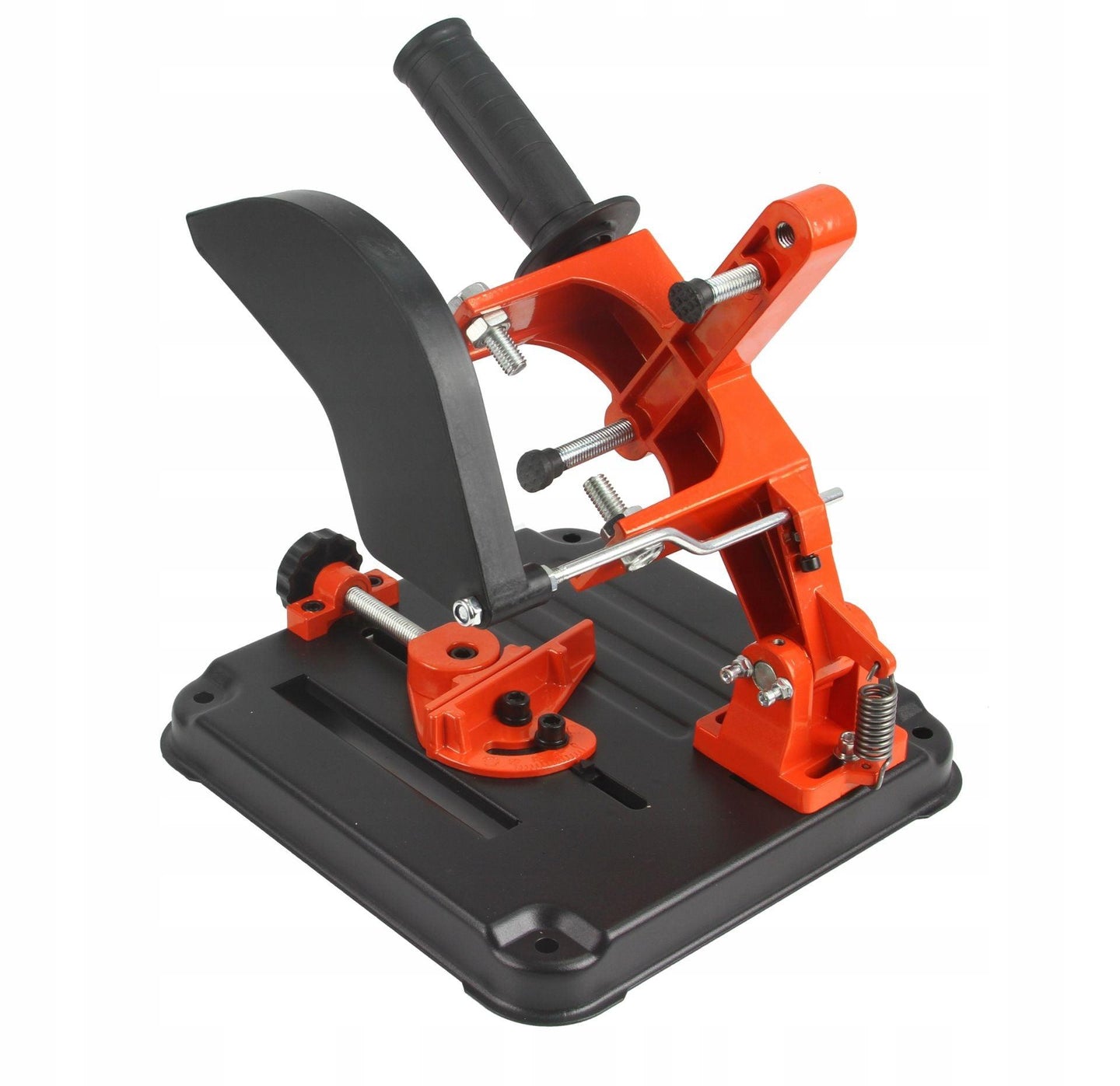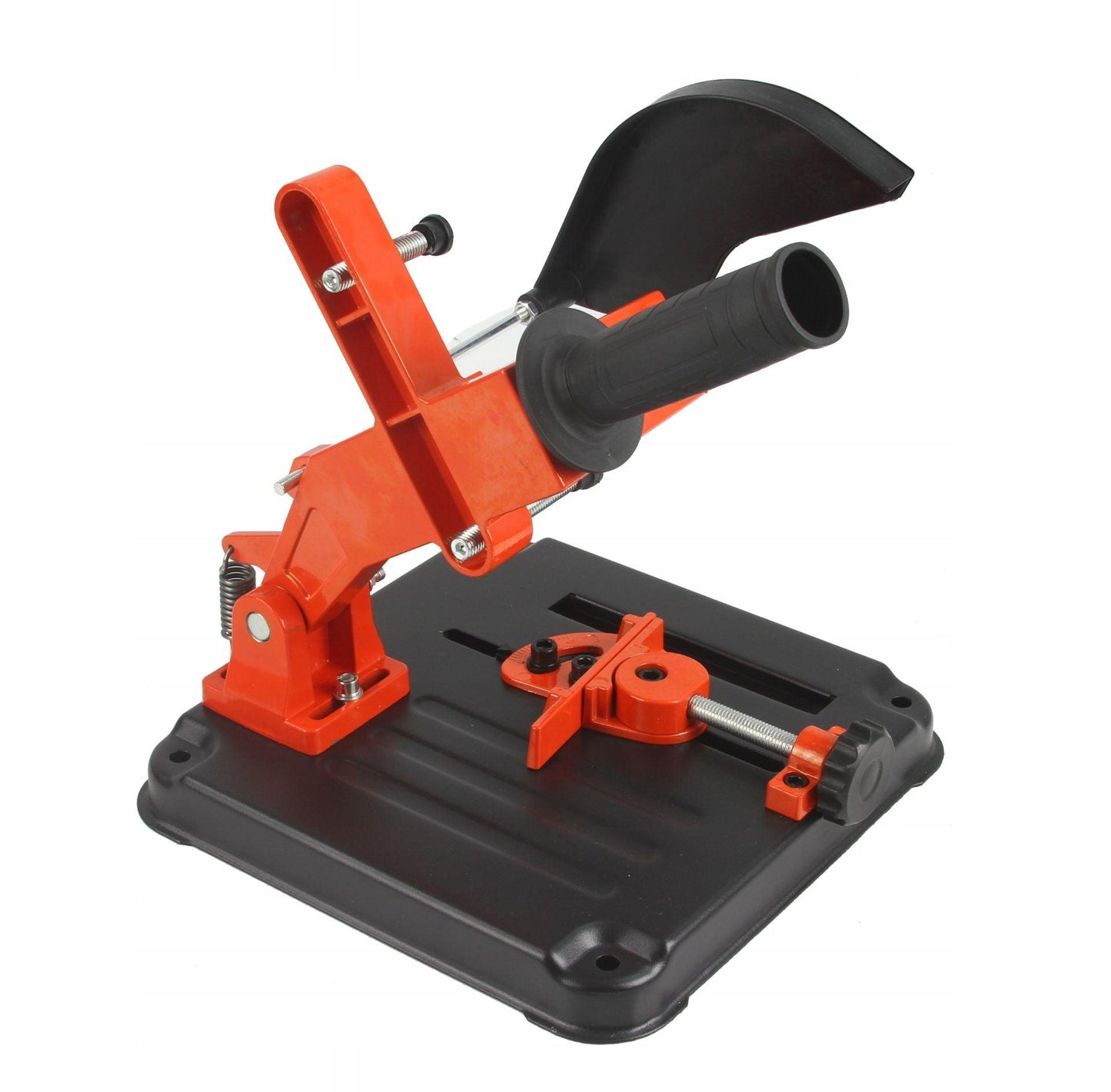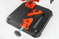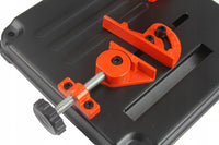 Un suport profesional pentru polizoarele unghiulare cu diametrul discului de 115 și 125 mm, conceput pentru tăierea precisă a pieselor metalice. Baza turnată sub presiune a trepiedului este echipată cu găuri, datorită cărora poate fi atașată cu ușurință la blatul de lucru. Menghina rotativă vă permite să reglați unghiul de tăiere în intervalul de la 0 la 45 °. Un capac suplimentar protejează utilizatorul de scântei.
