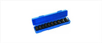 Setul include 10 bucăți de prize de impact de 1/2 ″ și o carcasă din plastic.