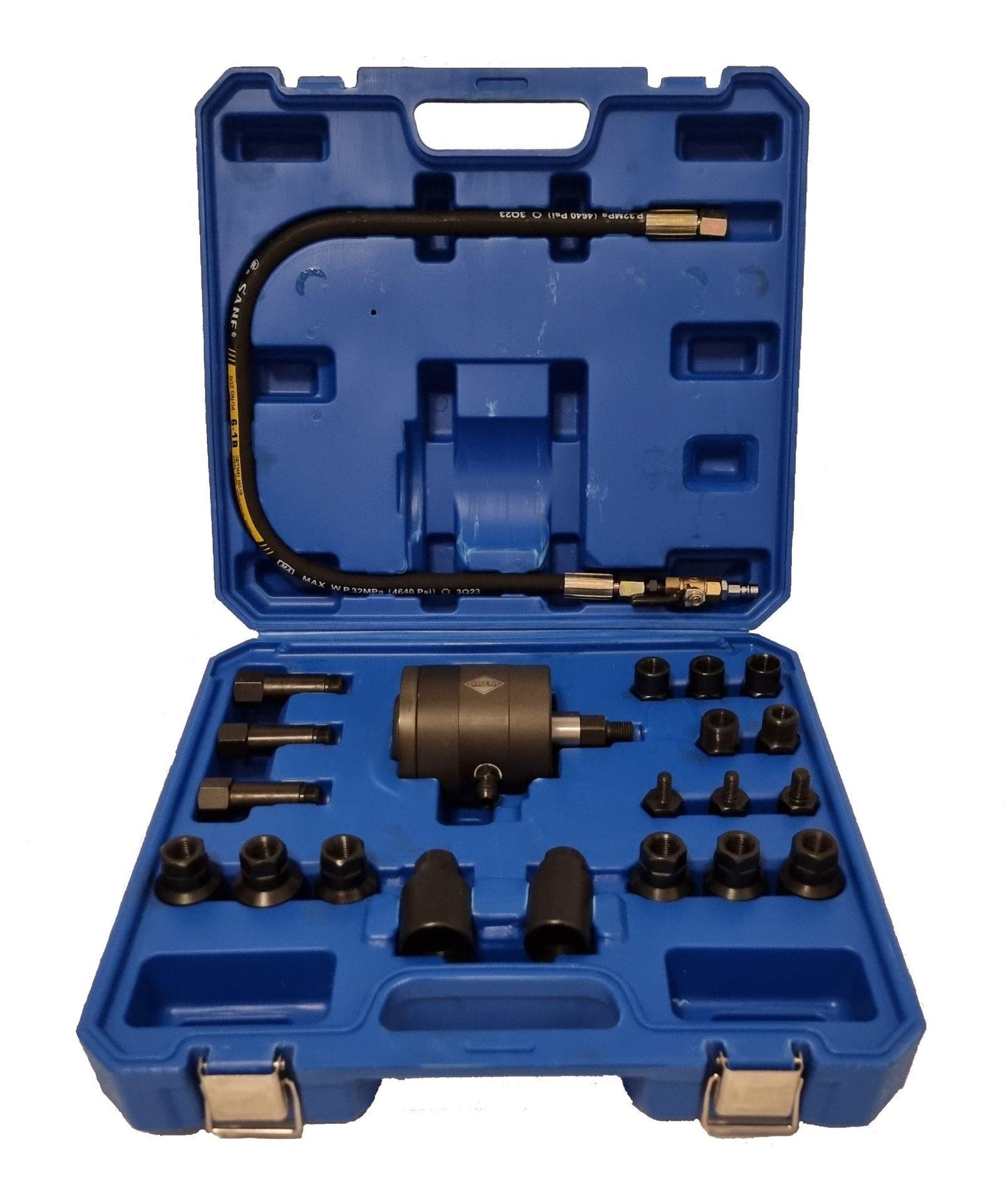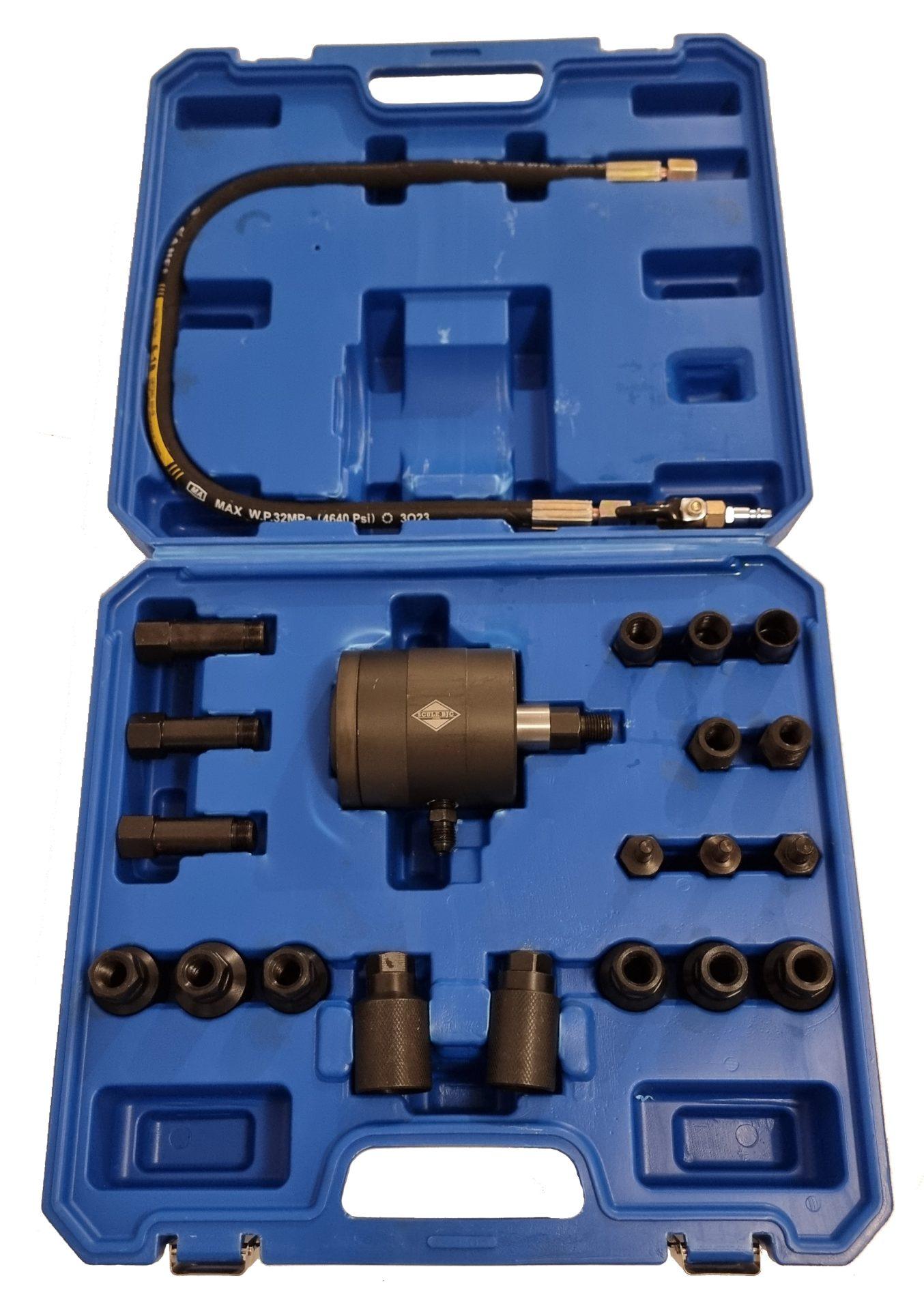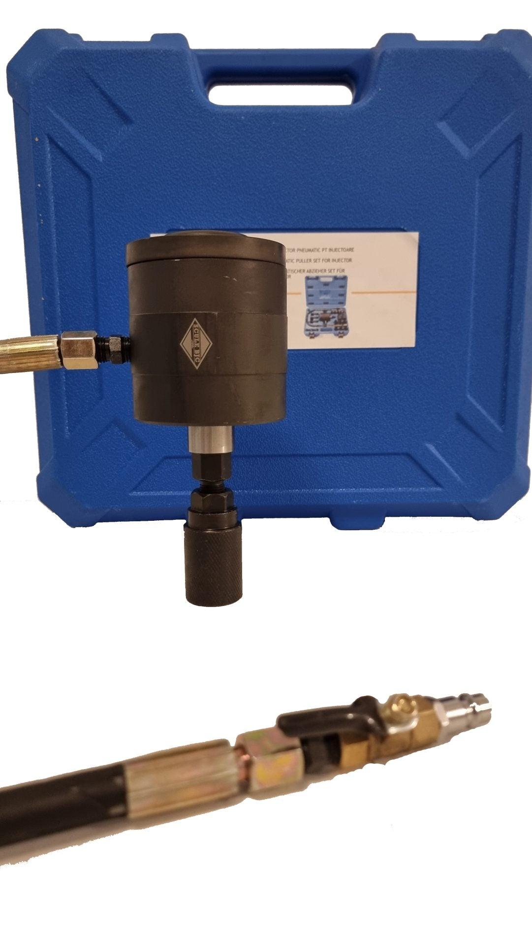 Noul Extractor Pneumatic pentru Scoaterea Injectoarelor SBJC8782A - un set ideal pentru extragerea injectoarelor gripate, care utilizează aer comprimat și un mecanism cu ciocan pentru a oferi performanțe superioare.