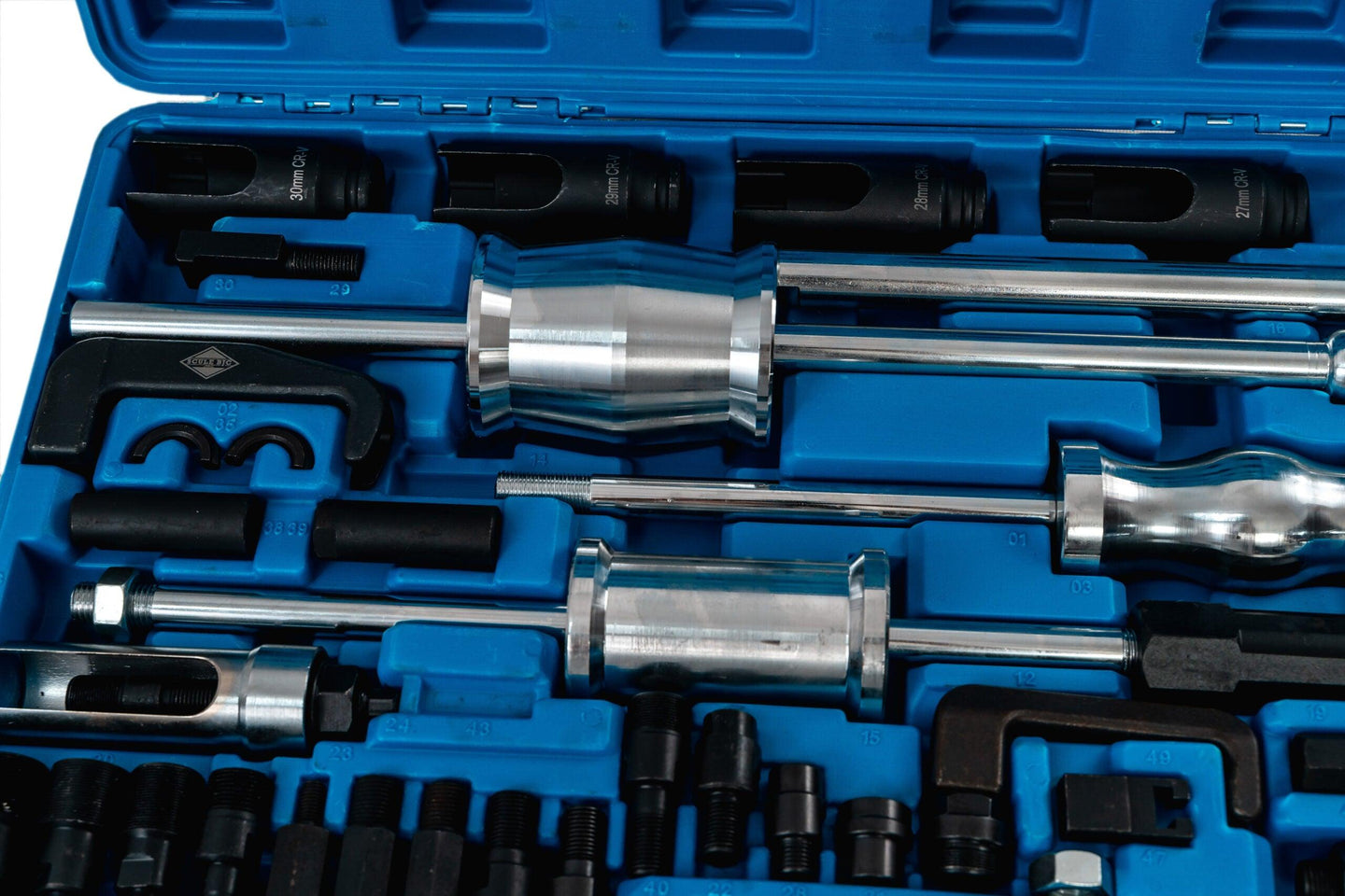 Acest set de scule profesionale cu un ciocan glisant specializat este destinat îndepărtării injectoarelor common rail blocate și intepenite fără a demonta chiulasa, pentru toate mașinile cu duze de injecție.